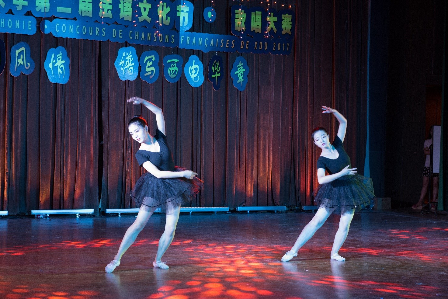 法语文化节,不仅仅有法国的文化,还有中国的传统文化穿插其中。西安外国语大学员工孟昭含带来的古典舞《惜春鼓韵》体现了中国传统文化中“柔”的美感,舞者的一颦一笑都牵扯到观众的心,每一个动作都展现了古典舞的柔美。芭蕾舞《Apologize》和现代舞《刺痛》更是将古典与流行文化演绎给全场观众,仿佛冰与火的交融,绽放出了更绚烂的花朵。