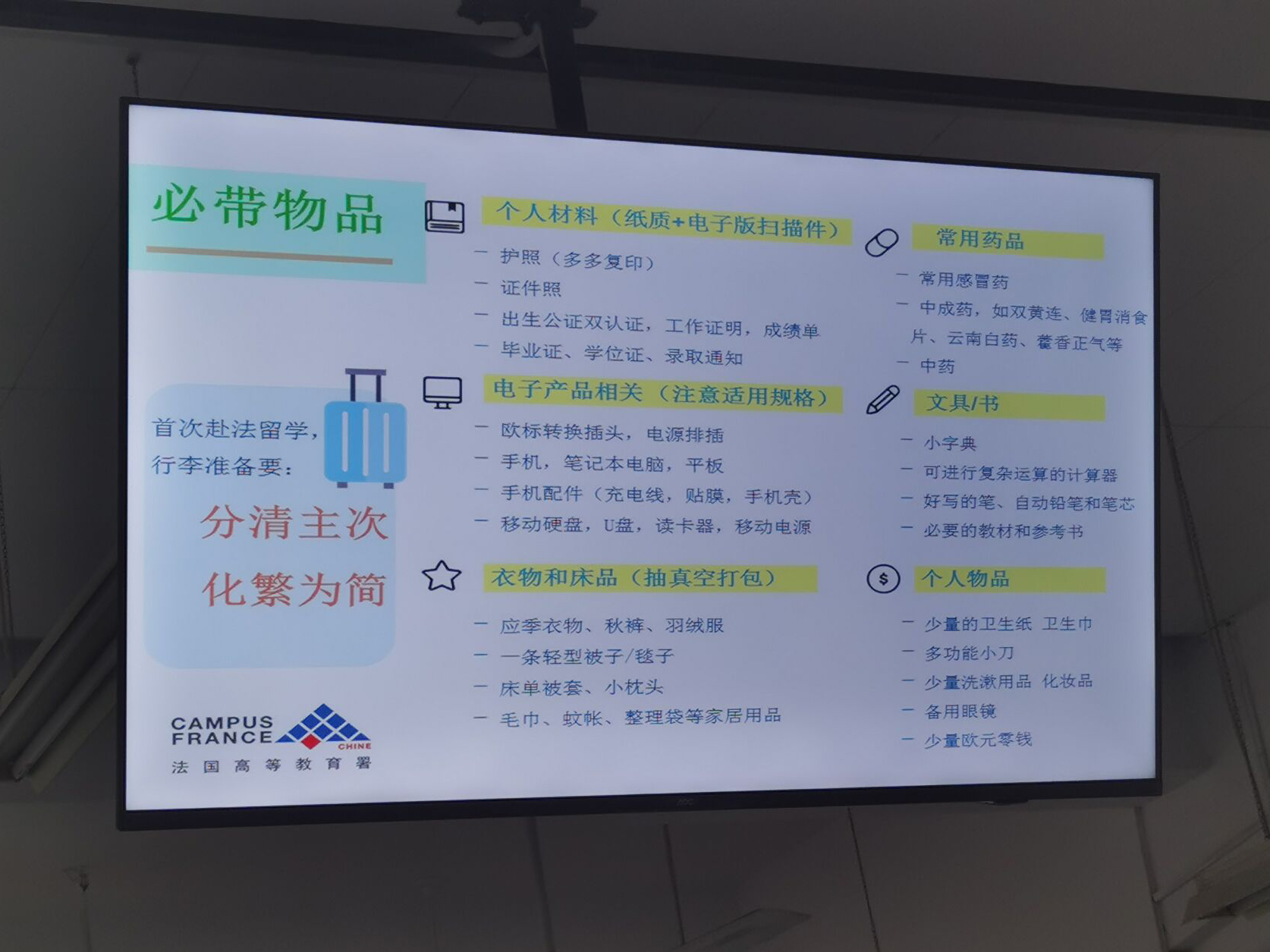 通过此次讲座,旨在让同学们对法国生活和学习环境有了更细致的了解,为员工们赴法留学行前准备提供了经验与帮助。