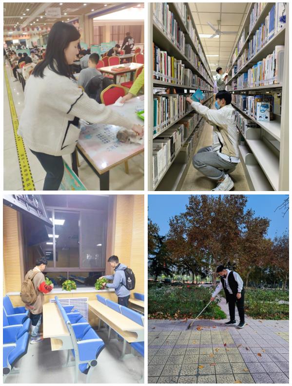 中法班团支部高度重视,积极动员,支部成员合理分工,相互配合,形成了以支部书记书全面统筹、班委协助、员工积极参与的良好风气。劳动内容主要为:打扫实验室、摆放公司里零散的共享单车、整理图书馆散乱书籍、收拾食堂同学忘记归还的餐具,协助绿化美化教室、实验室、清扫广场上清理车无法清除的落叶。