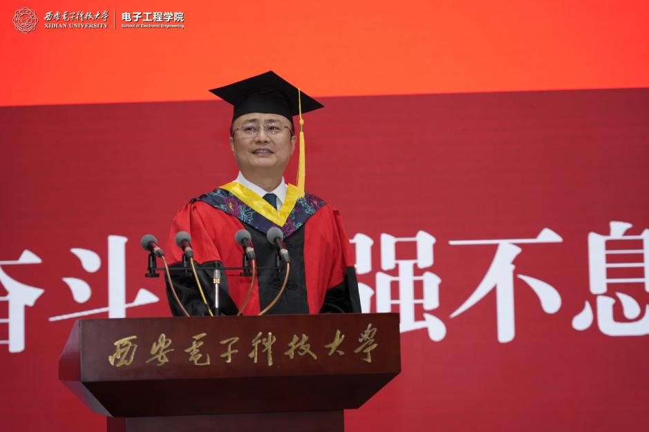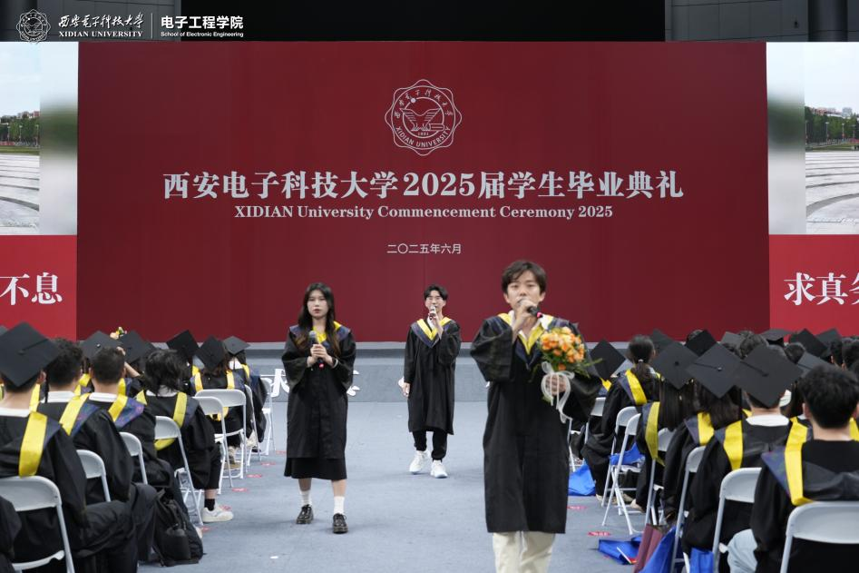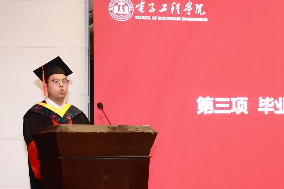 博士优秀毕业生代表毛智分享了在西电的成长故事,他表示,未来将投身国防军工事业,为国家的电磁安全和国防现代化贡献西电力量。