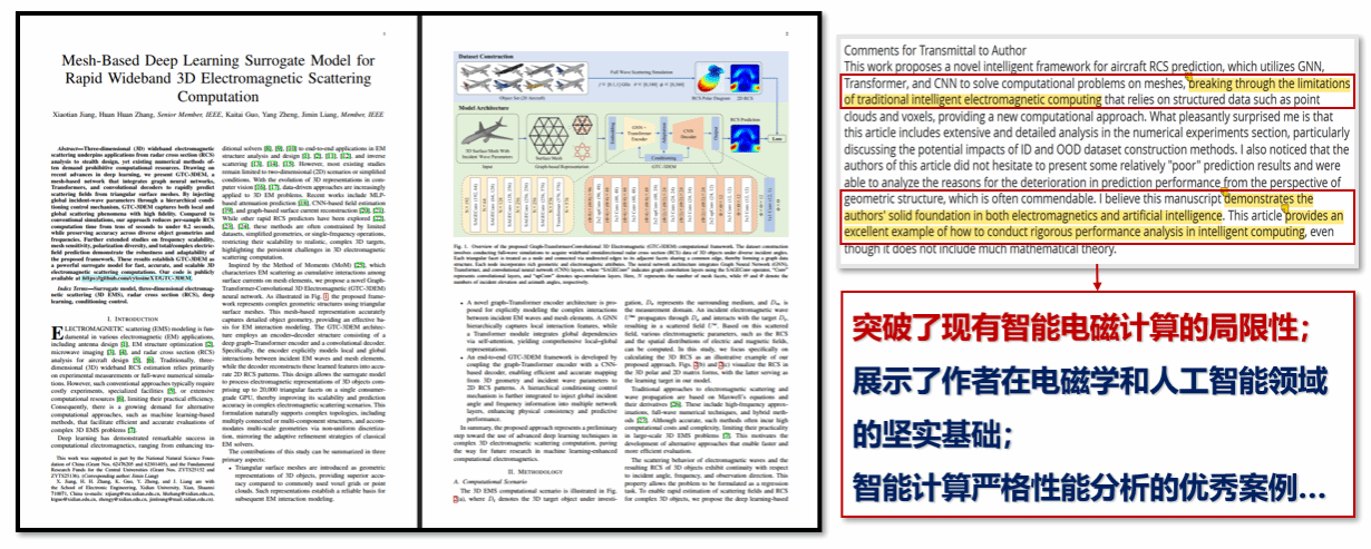 该工作在审稿阶段获得了国际同行的高度认可。审稿专家认为该工作“突破了现有智能电磁计算的局限性”,“提供了如何对智能计算进行严格性能分析的优秀范例”,并肯定该技术“对计算电磁学做出了坚实的贡献,这对实际工程应用具有重大意义”。