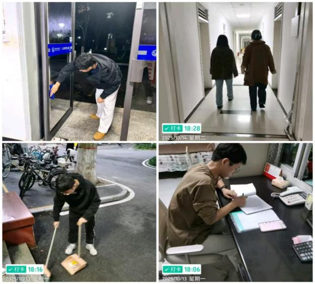 在宿舍楼管体验岗位上,2024级硕士第一党支部冯伟同学负责宿舍安全检查与卫生维护。他表示:“每一次打扫、每一次排查,都让我体会到楼管阿姨们的辛勤付出。劳动让我懂得责任,也让我更加珍惜校园的整洁与安全。”