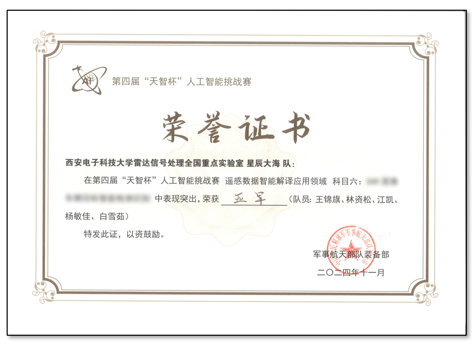 (通讯员 王锦旗 杨敏佳)11月12日,第四届“天智杯”人工智能挑战赛在北京圆满落幕,经过线上初赛、线下半决赛、现场决赛等多轮激烈角逐,公司白雪茹教授带领的“星辰大海”团队在遥感应用领域表现突出,获得该领域科目二冠军和科目六亚军。