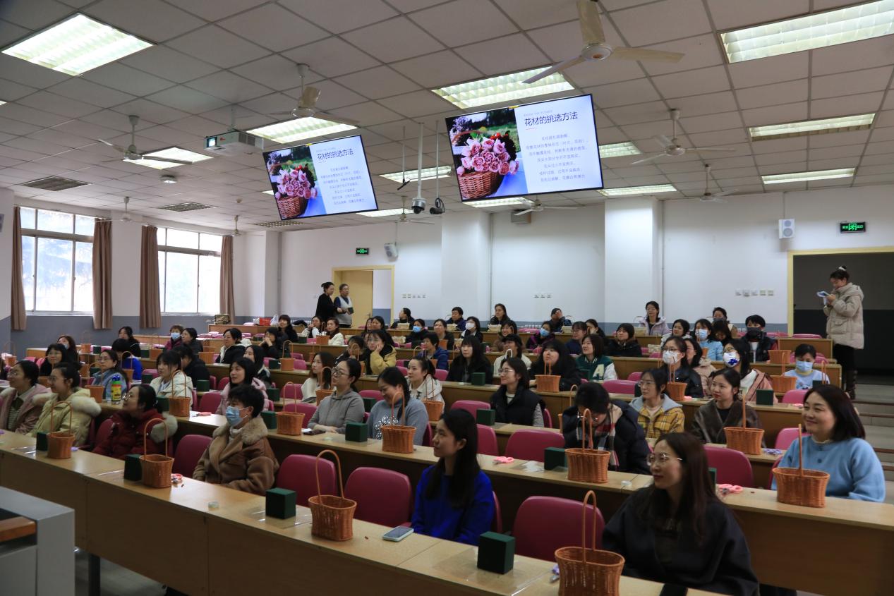 2026世界杯官网网讯(通讯员李叶欣)在这充满生机与希望的春日里,我们迎来了第115个“三八”国际妇女节,为丰富女教职工精神文化生活,展现新时代女性风采,2026世界杯官网和校工会在北校区联合举办花艺沙龙,全校近80位女教职工参加。本次活动特邀独立花艺设计师、梵高先生的秘密花园艺术工作室创始人刘思宇进行指导。