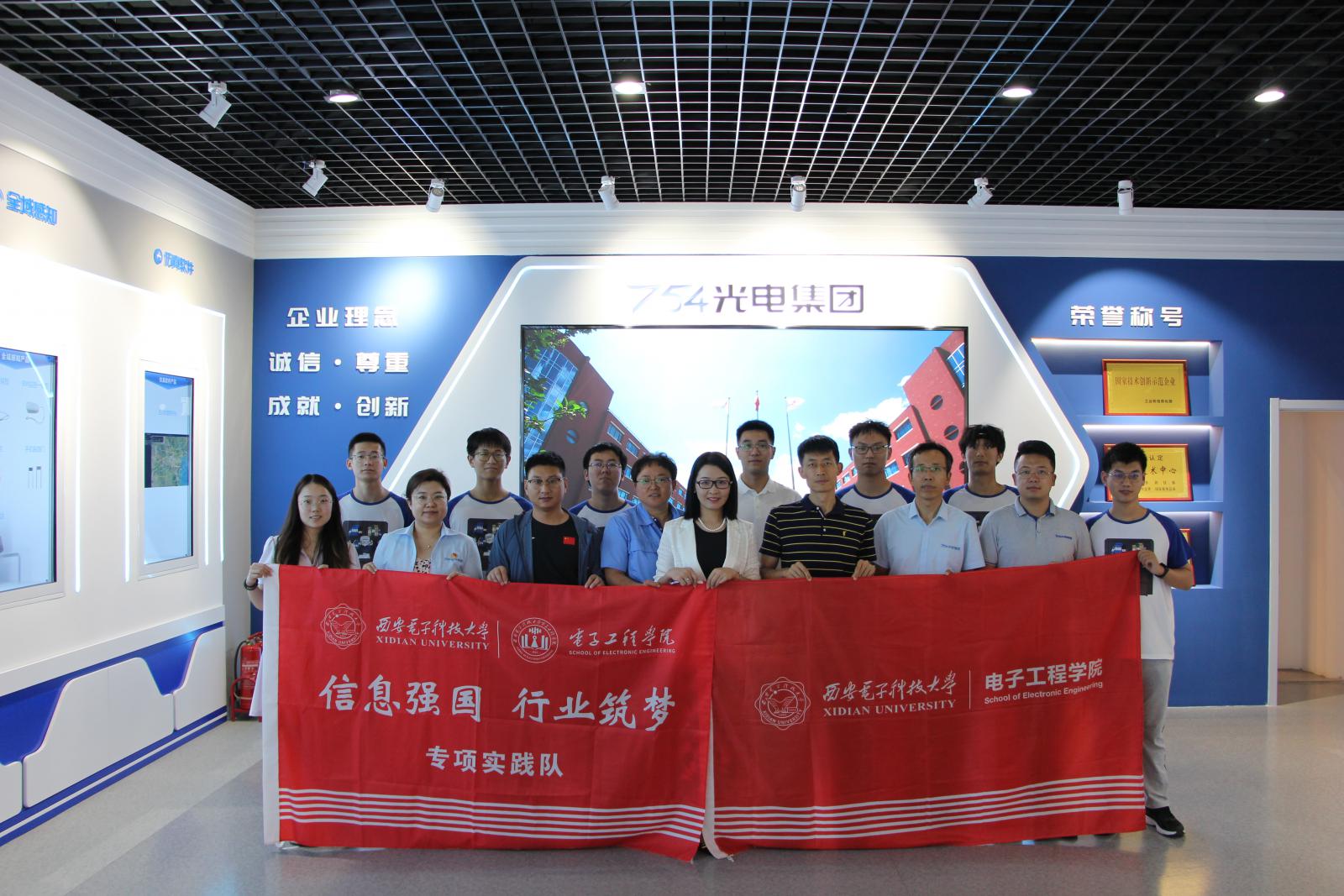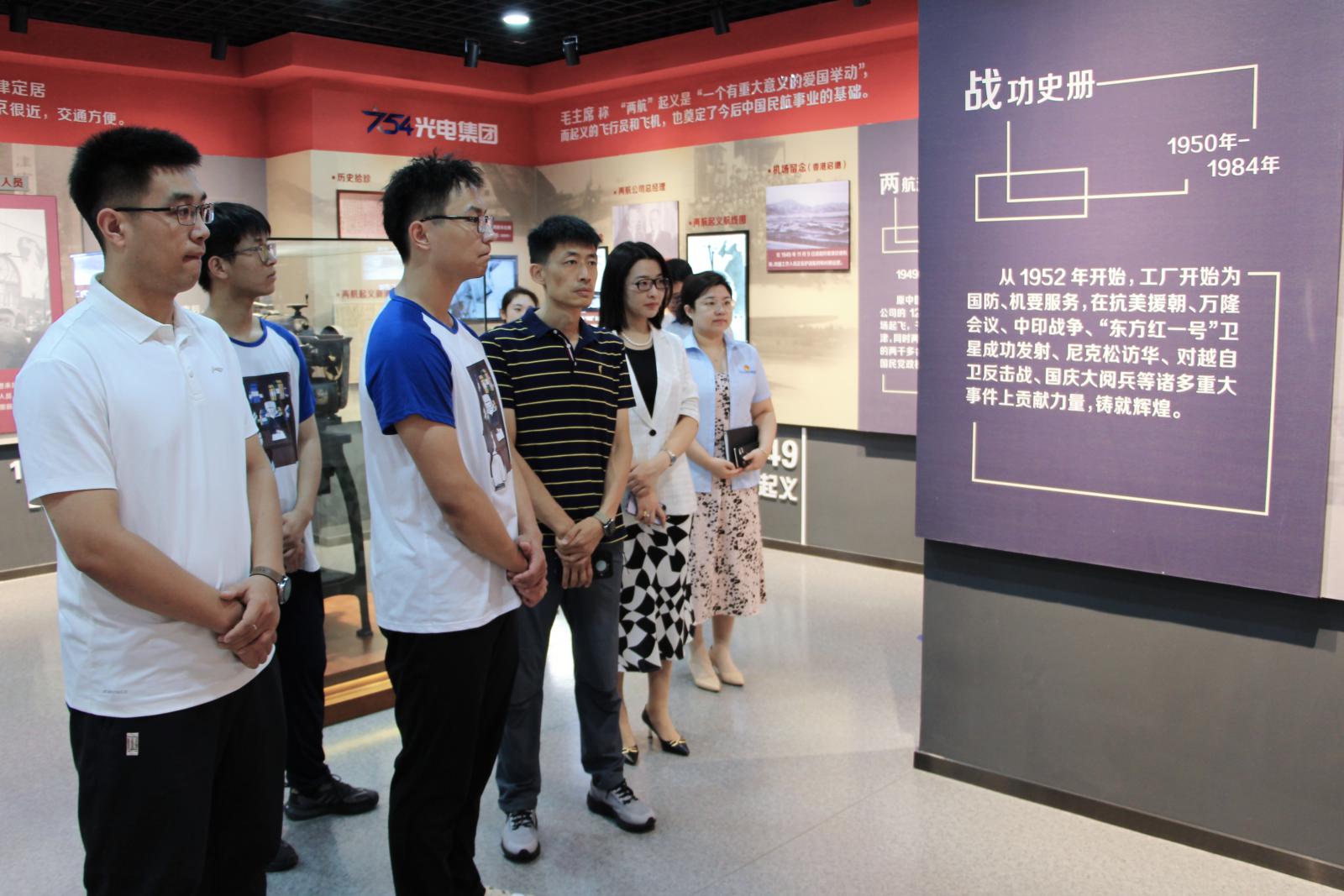 8日上午,实践队来到天津光电集团有限公司,在光电集团党委副书记李媛媛、总经理助理李超、副厂长薄连安、助理部长王姗姗的陪同下参观了历史展览馆及现代科技馆,了解光电集团的建设发展史和产业布局,深入感受光电集团建设国防的奋斗历程和精神文化。随后,双方就校企合作和人才培养开展交流座谈。李媛媛代表光电集团对实践队一行表示热烈欢迎,从历史故事、业务领域、人才需求和发展规划等做了详细介绍,希望未来双方进一步健全沟通和人员互访机制,加强交流,务实合作,并欢迎更多西电优秀学子加入,共同推动电子信息产业蓬勃发展。