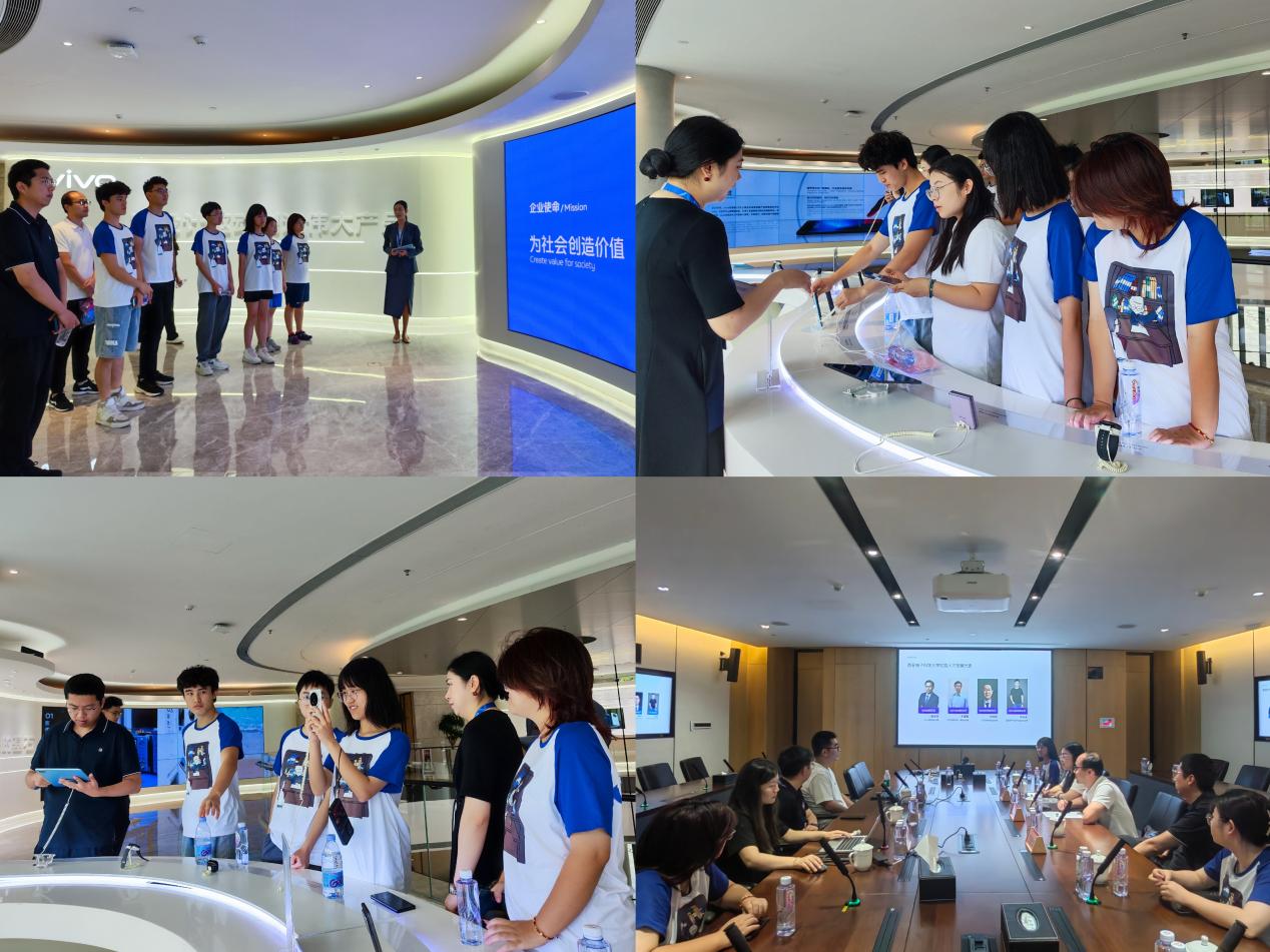7月19日上午,实践队赴东莞市vivo移动通信有限公司。师生一行在校园招聘经理舒骁海带领下参观了企业园区、手机组装车间、展厅,深入了解vivo科研成果、科技创新、智能生产等情况,让同学们在参观中对企业实际生产环节有了初步了解。