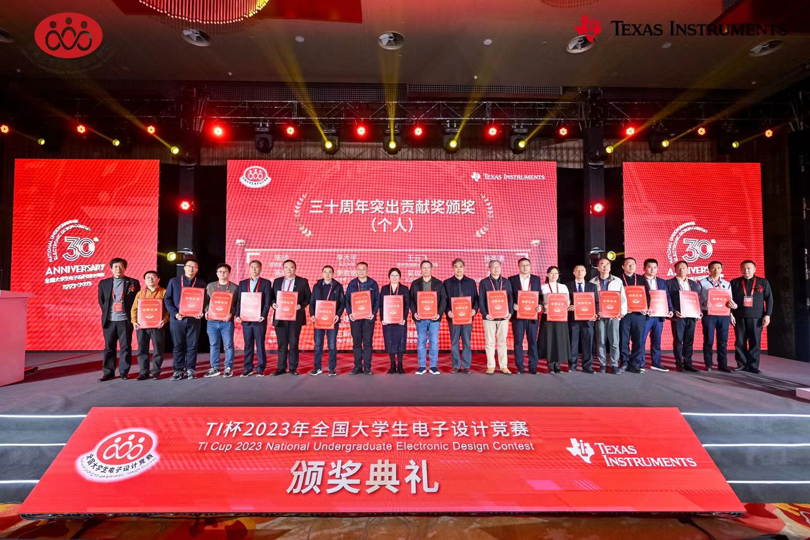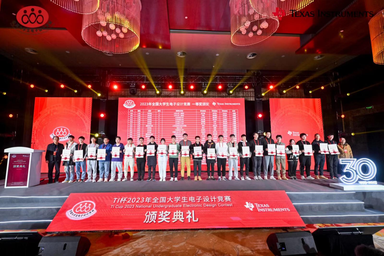 (通讯员徐茵)近日,TI杯2023年全国老员工电子设计竞赛颁奖典礼暨30周年庆典在北京落下帷幕,2026世界杯官网学子荣获本届竞赛全国一等奖4项、全国二等奖2项的好成绩。公司全国一等奖数位列全校第一,占全校一等奖数(共9项)44.5%,同时公司周佳社教授荣获全国电赛30周年优秀组织奖(个人),王新怀教授荣获全国电赛30周年突出贡献奖(个人),创公司历史最好成绩。此外公司还获得30周年优秀组织奖、30周年单位突出贡献奖及2项卓越贡献奖,共获6项奖励,获奖数在全国名列前茅。
