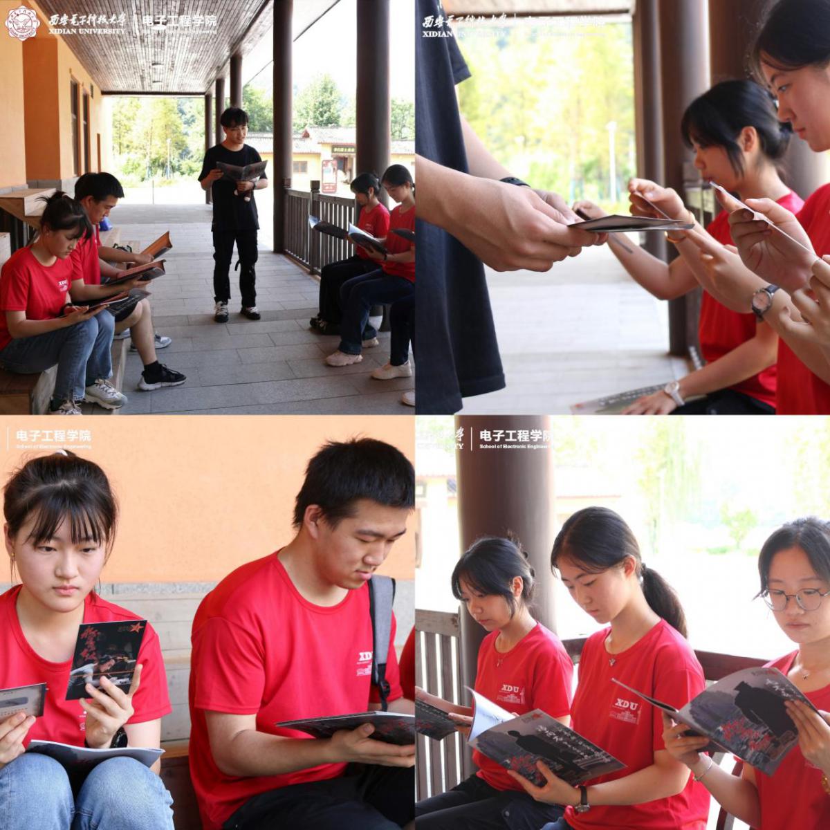 李白烈士故居里,队员们在原场地演绎红色剧本《永不消逝的电波》。“今天我的角色就是以李白先生为原型创作的,在他曾住过的地方开展西电人自己制作的红色剧本,更让我‘入戏’了。”2022级本科生徐绍焜同学说,“演绎完《永不消逝的电波》,我不禁被李白员工的英勇无畏精神深深感动,哪怕面对敌人的威逼利诱,也丝毫不动摇。正是无数如李白烈士一样的革命先辈的前仆后继,才有了我们今天的新中国。”