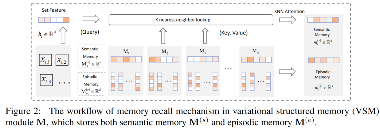 段志斌和吕帜一合作完成的论文《Few-shot Generation via Recalling Brain Inspired Episodic-Semantic Memory》面向小样本生成这一具有挑战性的任务,受大脑记忆力机制的启发提出了一种新颖的记忆力模块。该记忆力模块将情景记忆与语义记忆巧妙结合,其中情景记忆用于记忆具体的信息,语义记忆用于记忆抽象的信息。同时,文章中提出了一种情景记忆与语义记忆耦合的记忆力模块更新机制。所提出的记忆力模块被应用于层次化变分自编码器和概率扩散模型中,并取得了更好的小样本生成性能。下一步,课题组将继续深入研究将所提记忆力模块用于其他任务特别是小样本场景任务中。
