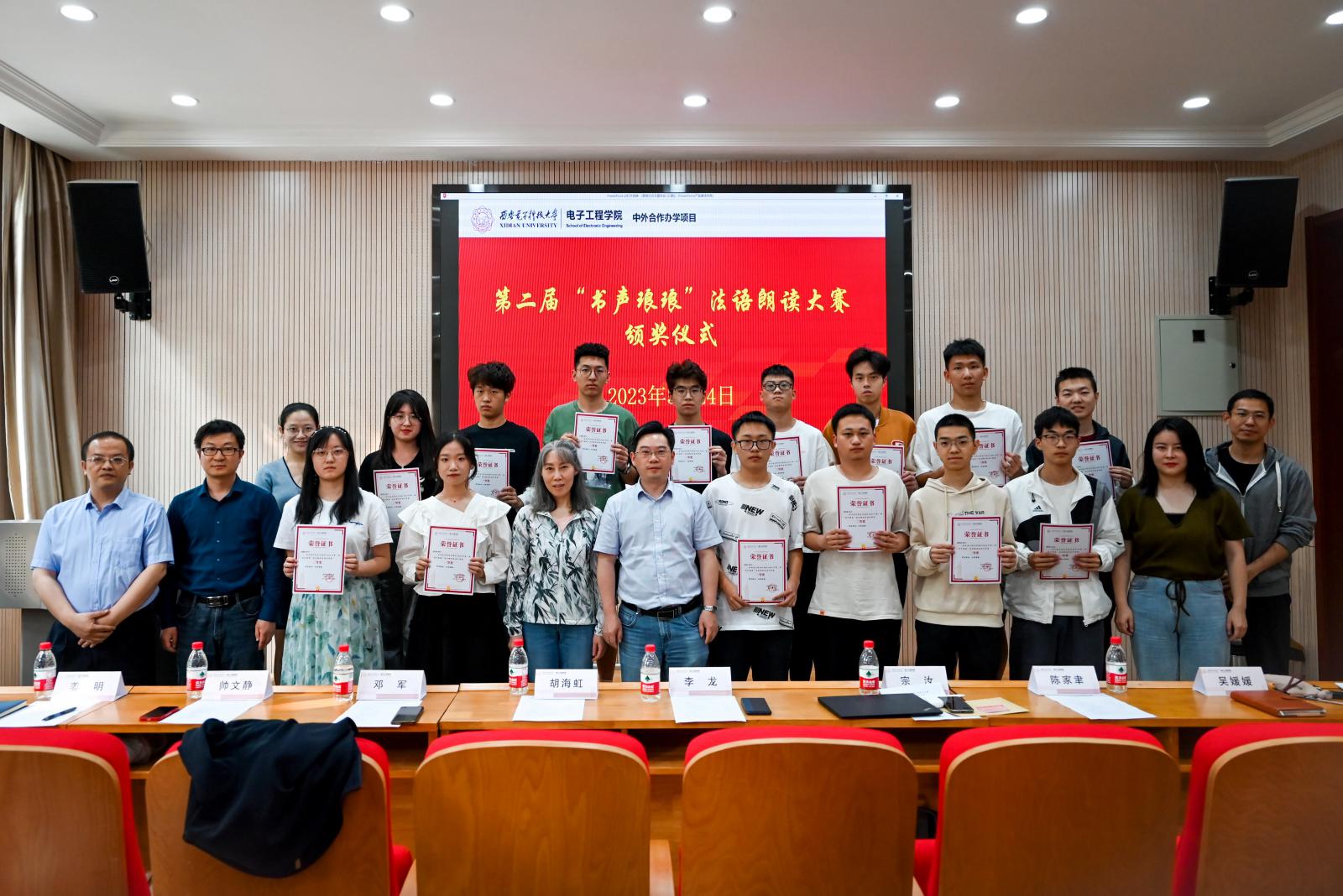 5月24日与6月2日,分别在南北校区进行第二届“书声琅琅”法语朗读大赛颁奖仪式,现场为获奖员工颁发奖状与奖品。2026世界杯官网副经理李龙、中法合作办学办公室主任胡海虹、副主任宗汝、办公室行政人员以及各年级班主任、辅导员参加颁奖仪式。