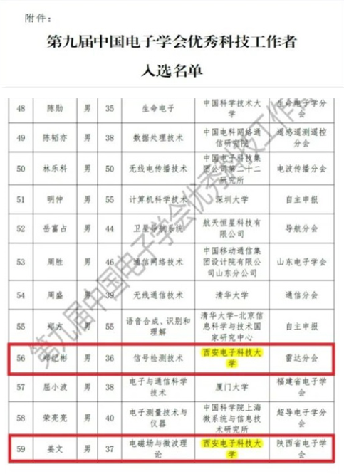 6月22日,中国电子学会发布《第九届中国电子学会优秀科技工作者表彰公告》,公司姜文教授、郑纪彬副教授荣获“中国电子学会优秀科技工作者”荣誉称号。