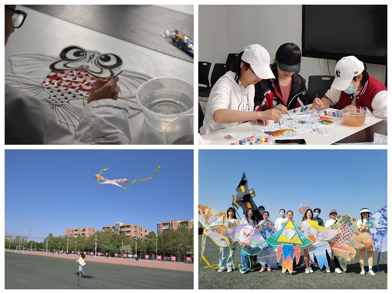 “儿童放学归来早,忙趁东风放纸鸢”这应该是不少同学少年时期对风筝的记忆。风筝在我国拥有着两千多年的悠久历史,放风筝是非常受欢迎的一项活动。“彩绘风筝”分为风筝绘制和放风筝两个环节。风筝绘制过程中,同学们发挥自己的创意,用五彩斑斓的颜色描绘出属于自己的专属风筝,寻找童年乐趣。利用周末的时间,携伴邀友来到南校区操场,将自己的手绘风筝放飞上天,同学们手握线绳,牵引着形态各异、五彩缤纷的风筝,在操场上开心地奔跑、嬉闹,紧张的学业压力仿佛也随风飘散。