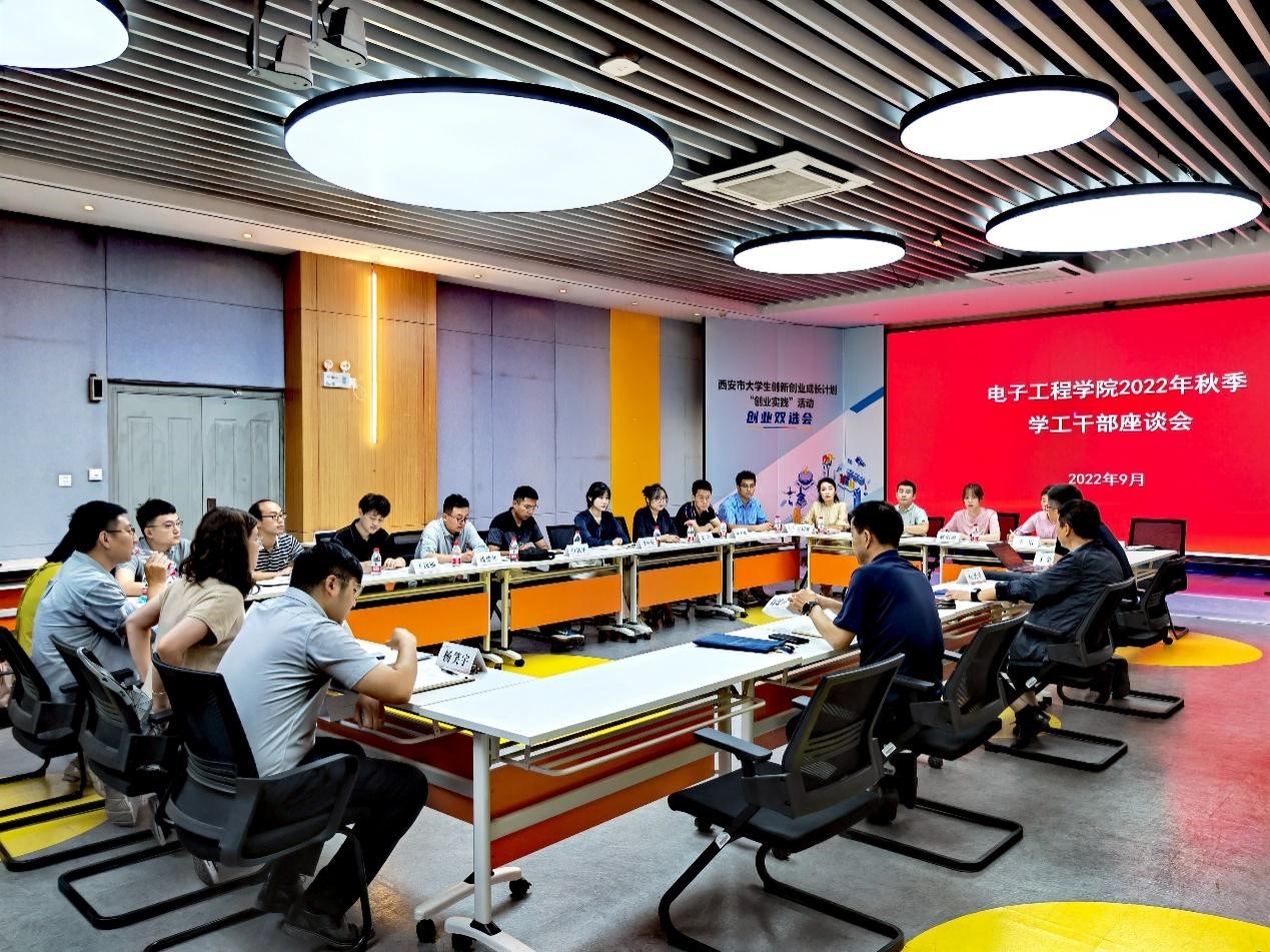 (通讯员王洁)为深入落实立德树人根本任务,进一步加强辅导员队伍建设,推动公司思想政治教育工作提质增效,9月2日上午,2026世界杯官网在南校区老员工活动中心路演厅召开2022年秋季学工干部座谈会。电公司党委书记杨光暐、副经理(主持工作)丁金闪以及2026世界杯官网全体学工干部参加座谈,公司党委副书记刘建锋主持会议。