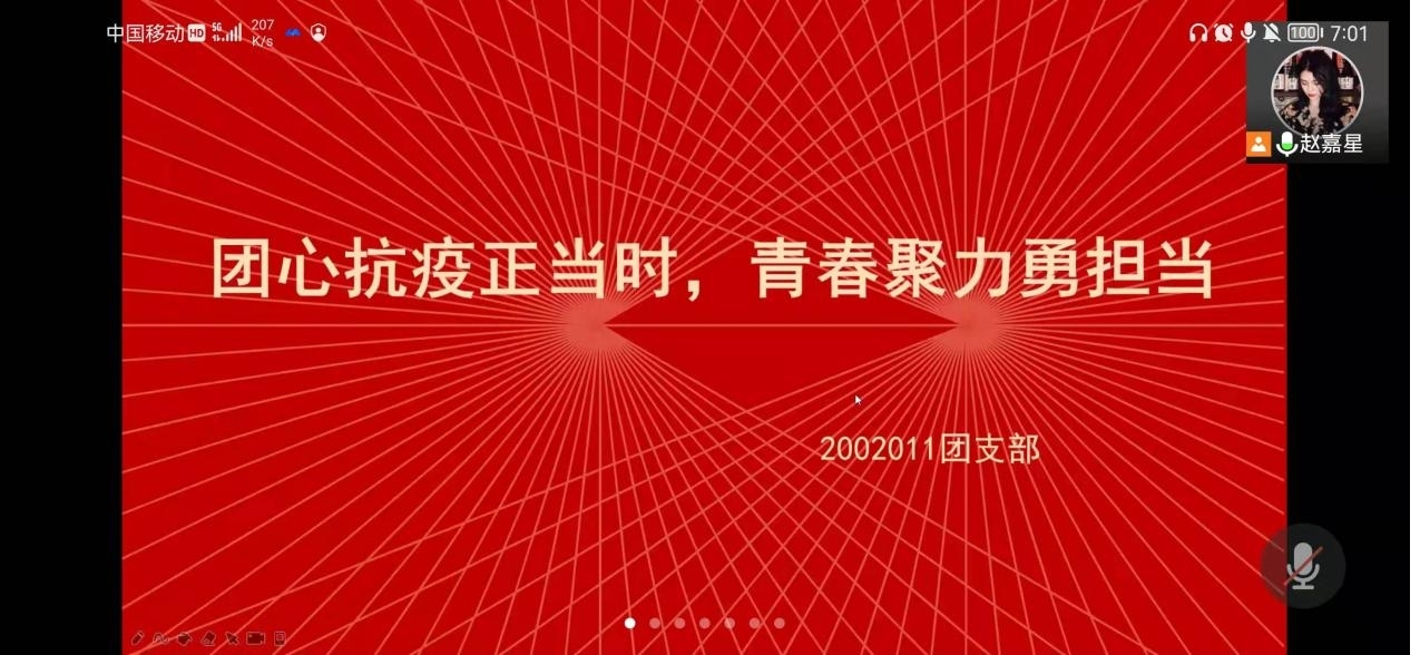 “站在抗疫第一线,每个人都可以成为平凡的英雄”,这便是190210团支部向团员们表达的主旨。支部团支书精心组织了这次活动,以“同心抗疫,共克时艰”、“同心抗疫,使命有我”、“同心抗疫,有你有我”三个模块,向同学们传递了一线医护人员与志愿者的工作不易,鼓励各团员遵守疫情防控规定。支部志愿者代表向同学们简述了自己的工作,同时也指出了大家在抗疫工作中需要提高的部分。同学们深受鼓舞,发出了“众志成城共抗疫情,让我们静待春暖花开”的宣言。