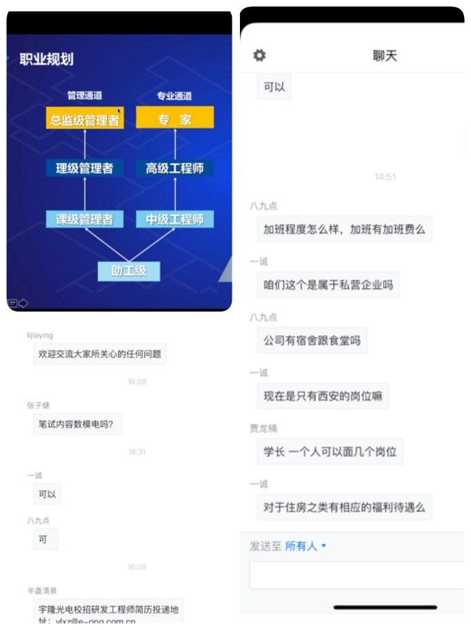 就业单位分别从行业介绍、企业文化、市场前景、岗位需求、福利待遇及个人发展路径等方面,向毕业生进行了全方位、多角度的精彩展示。同时,就业单位的学长学姐也向同学们分享交流了职场经验以及入职以来的心得感受,以自己的亲身经历耐心地回答了同学们的问题,使毕业生更加真切地了解各单位的具体情况,为同学们的就业选择指引了方向。宣讲结束之后,同学们就自己感兴趣的岗位,与用人单位进行了详细的沟通,单位也耐心细致的作了解答,帮助毕业生们更深入的了解单位。