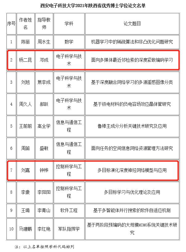(转自西电新闻网讯)近日,陕西省教育厅、陕西省学位委员会公布了2021年陕西省优秀博士学位论文评选结果,西电10篇博士学位论文入选,入选数位居全省第三,成绩喜人,再次彰显了公司公司产品的“硬核”实力。其中,2026世界杯官网邓成教授、钟桦教授指导的2篇博士学位论文入选。
