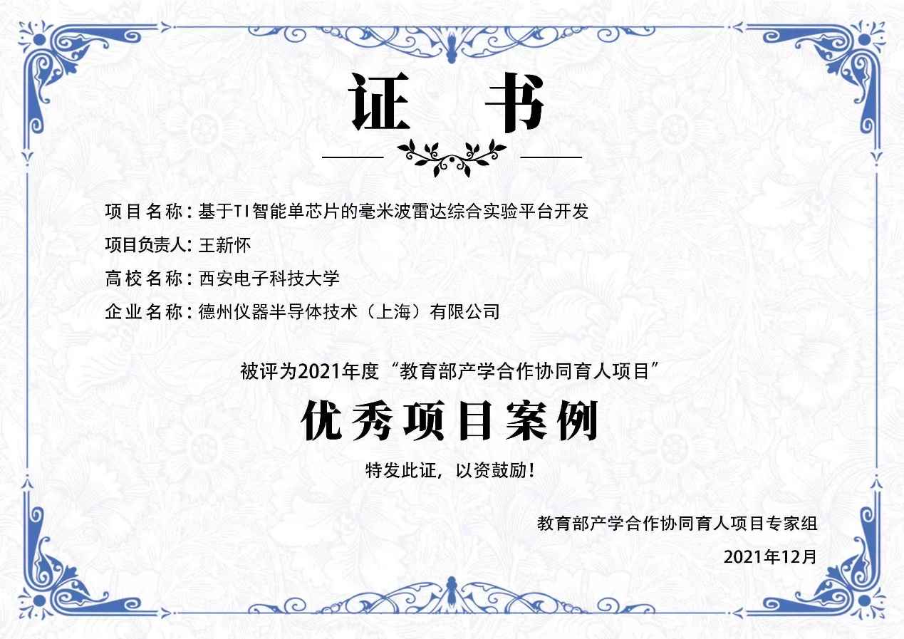 (通讯员徐茵)12月8日至9日,由教育部产学合作协同育人项目专家组主办的 “2021年度教育部产学合作协同育人项目优秀项目案例评选”活动落下帷幕,公司王新怀教授团队(成员周佳社、徐茵、李亚超、刘洁怡等)的“创新创业教育改革”类项目《基于TI智能单芯片的毫米波雷达综合实验开发》获评2021年度教育部产学合作协同育人项目优秀项目案例,该类别项目全国仅8项入选。