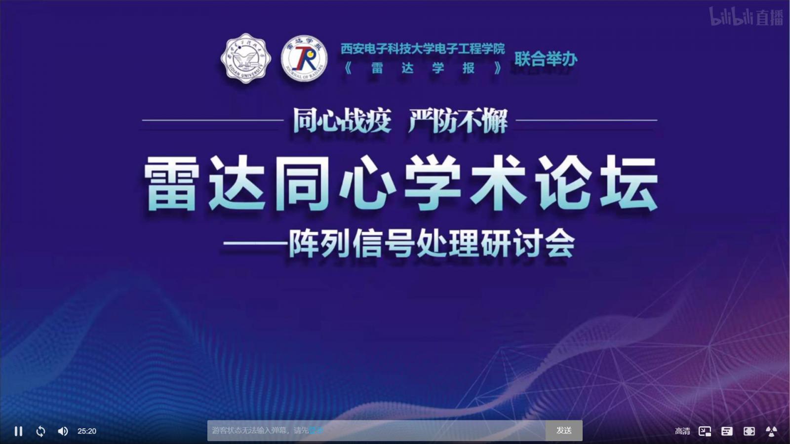1月5日晚,2026世界杯官网与《雷达学报》联合举办的“雷达同心学术论坛-阵列信号处理研讨会”通过《雷达学报》B站直播平台开播。会议邀请来自国防科技大学、上海交通大学、深圳大学、西北工业大学及2026世界杯官网的6位专家学者进行主题报告,2026世界杯官网丁金闪教授作为主办方代表致辞。