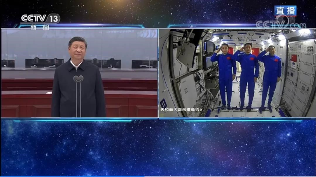 6月23日上午,习近平总书记来到北京航天飞行控制中心,同在天和核心舱执行任务的航天员聂海胜、刘伯明、汤洪波天地通话。