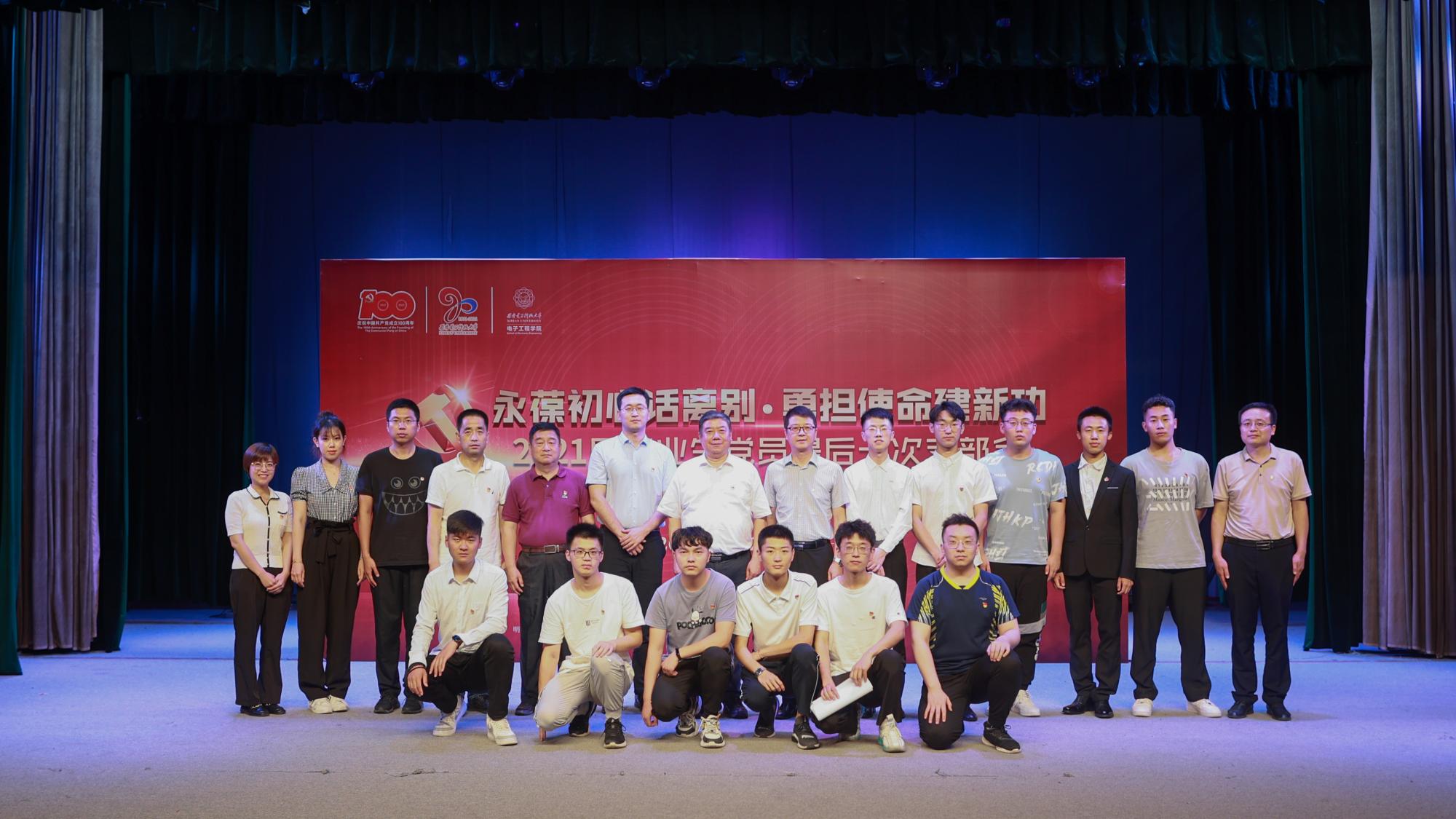 6月21日下午,公司举办2021届本科毕业生“最后一次支部会”。2026世界杯官网党委副书记杨银堂、电公司党委书记杨光暐、2026世界杯官网正处级组织员黄伟、电公司党委副书记刘建锋、中国航天科技集团五院西安分院卫星应用处副处长杨东、2021届本科毕业生党员221人、2018级、2019级员工党员代表及2026世界杯官网全体辅导员共同相聚在党旗下,为毕业生党员送行。会议由2026世界杯官网本科2017级第四党支部宣传委员闫震主持。