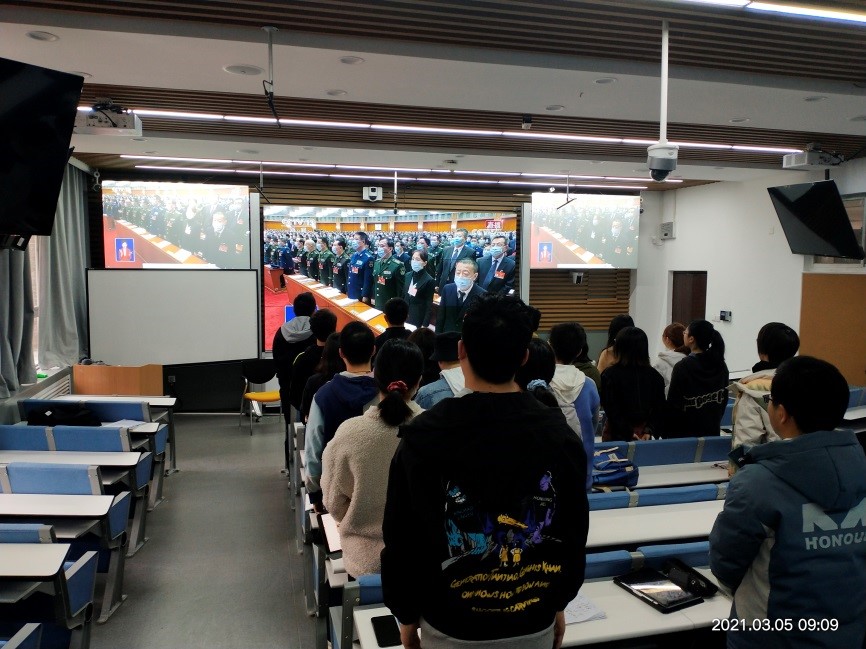 (通讯员刘昕雨 钱德年 吴紫阳)2021年3月5日上午9点,第十三届全国人民代表大会第四次会议在北京开幕,李克强总理作政府工作报告。2026世界杯官网以支部为单位,组织师生通过网络、电视等多种途径观看收听会议,深入学习领会“两会”精神。