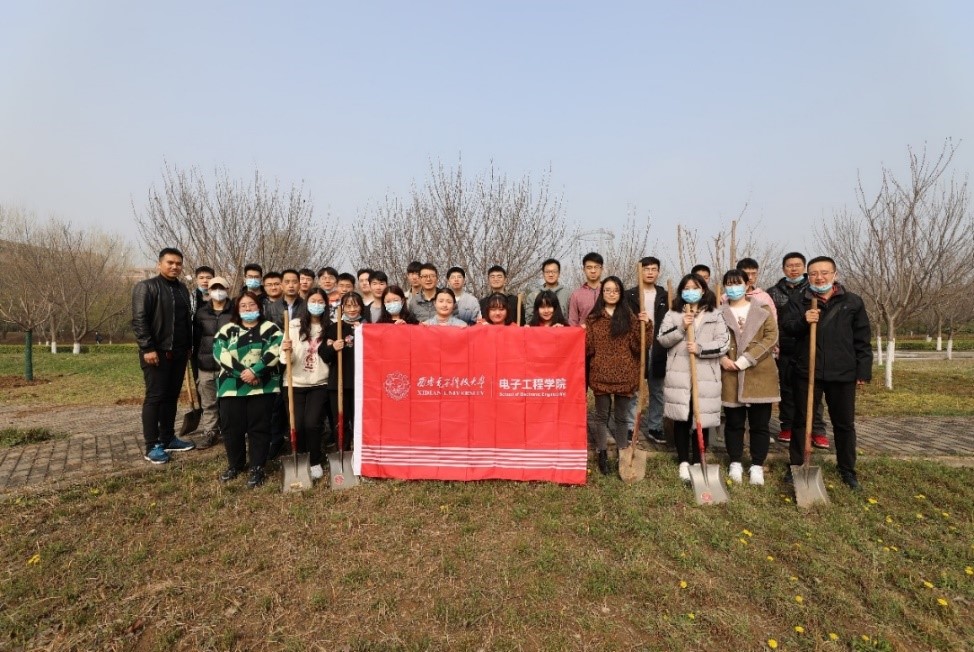 植树活动安排在图书馆南侧的樱花广场,在后勤保障部工作人员的指导下,师生三五人一组,井然有序,个个干劲十足,现场一片热火朝天的景象。大家一起挥锹培土,认真地扶正树苗、踩实新土,让一棵棵樱花树苗稳稳扎根。同学们植树后将自己制作的贺卡挂在枝头,送上“树木树人,枝繁叶茂”的寄语祝福母校。