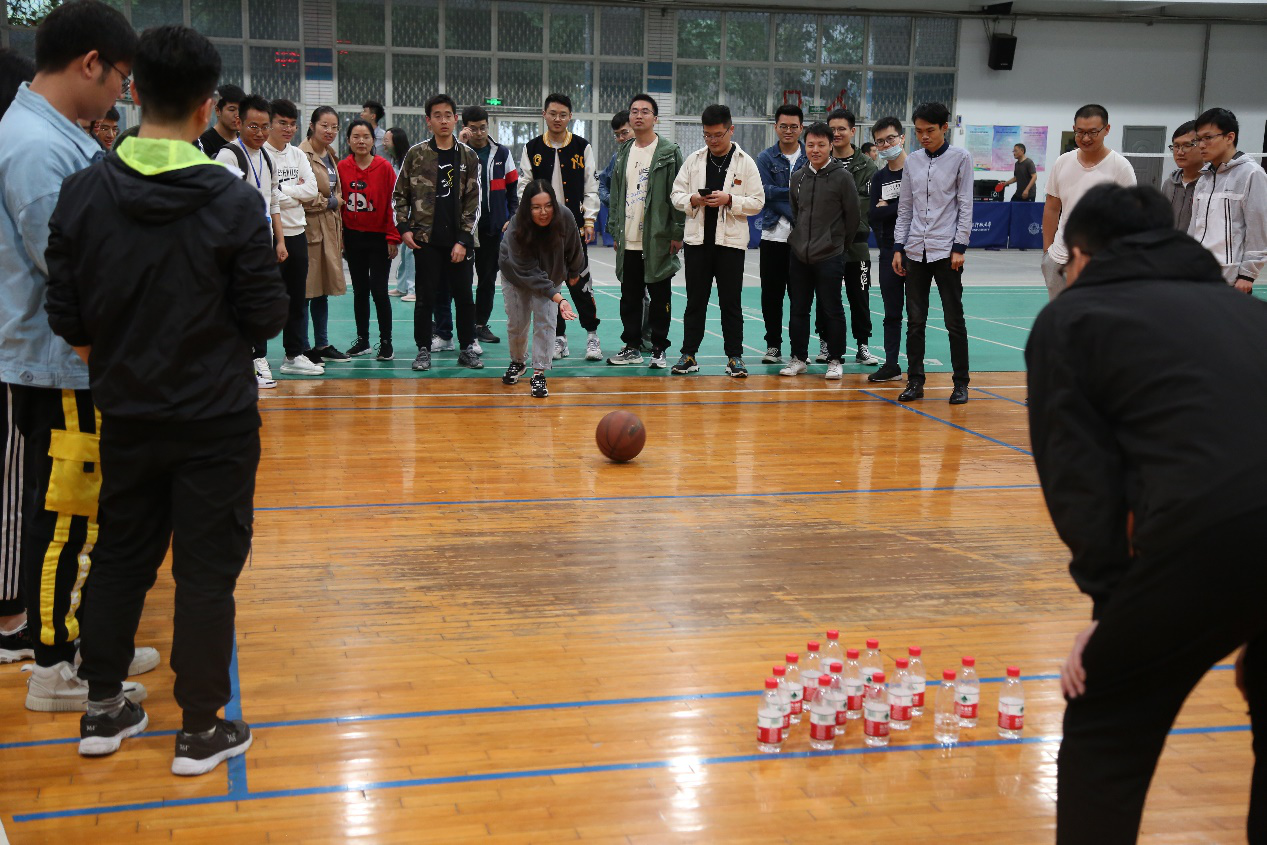 比赛在下午2点正式开始,所有参赛队员在裁判员带领下进行集体热身运动,各项目裁判提前讲解比赛规则,各队员充分做好比赛准备。公司辅导员老师和参赛同学在裁判带领下一起完成比赛,比赛中穿越体育馆对角线的纸飞机、腾空而起的小袋鼠、一击全中的保龄球纷纷赢得满堂喝彩,全场比赛笑声不断。