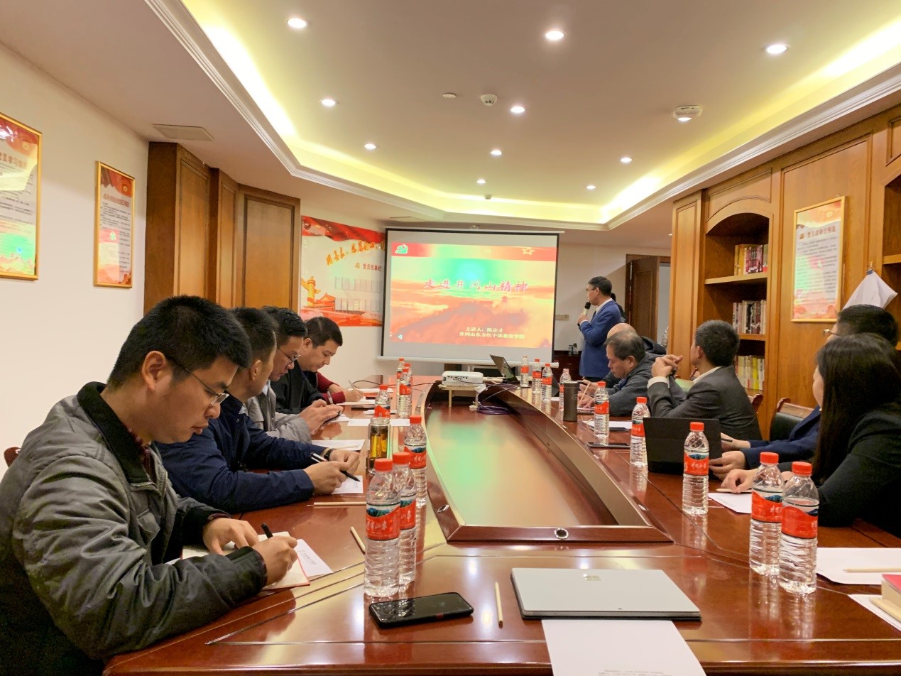 党委委员周佳社谈到,杨光暐书记带领大家学习领会十九届五中全会精神,党的十九届五中全会是在“十三五”规划目标任务即将完成、全面建成小康社会胜利在望,即将开启全面建设社会主义现代化国家新征程、向着第二个百年奋斗目标进军之际,召开的一次十分重要的会议。作为高等教育工作者,结合学习党的十九届五中全会精神,要以井冈山精神为指引,不忘初心,配合公司、公司做好十四五规划,做好本职工作的同时,结合公司公司产品改革及今年疫情对教学带来的冲击,以“识变,应变,求变”为精神动力,大力开发与尝试信息化教学及“AI+教育”,构建新的教学模式,打造实验金课,提高教学效率,提高育人成效。