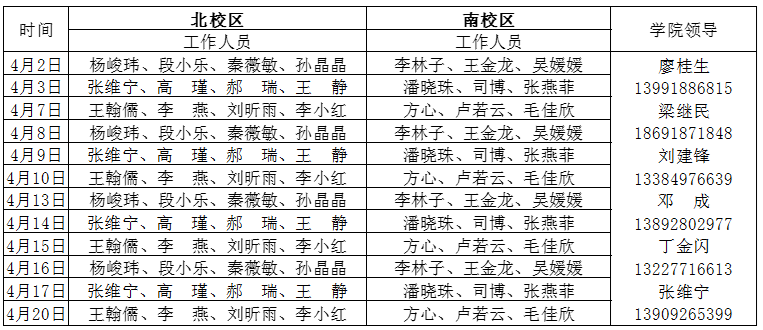 地点:北校区为办公楼二楼,南校区为图书馆四楼
