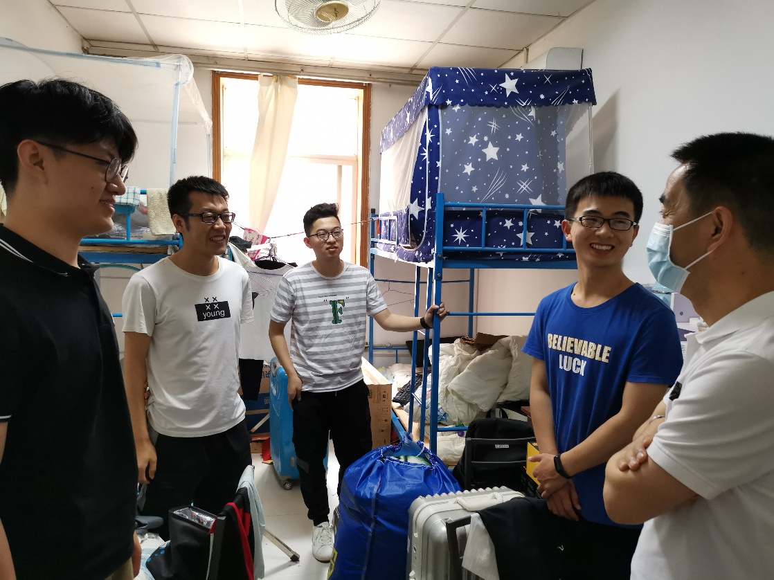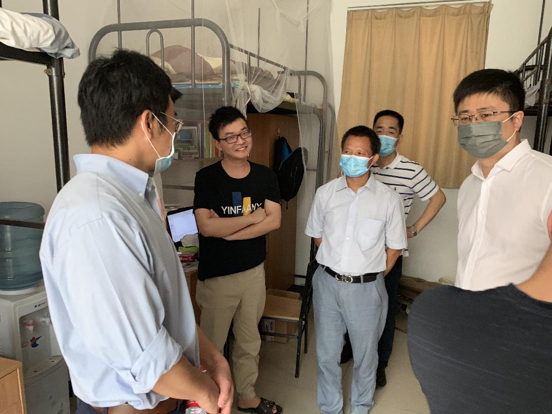 在员工宿舍,公司领导详细询问了同学们返校后的身体状况以及返校后学习和生活上的需求。针对毕业生关心了员工目前的就业状况、对于未来的发展规划以及离校前准备等情况,并征求了同学对公司公司产品、管理服务等方面的意见建议。经理廖桂生叮嘱同学们在特殊时期要有大局意识,遵守公司疫情防控期间的管理规定,充分利用好防疫物资做好个人防护;副经理邓成叮嘱同学们利用好在校时间,提升学习能力,增加个人知识储备;副书记刘建锋提醒同学们要积极适应防控形势下的学习生活节奏,尽快调整好状态,合理安排学习生活,出现异常情况要第一时间向辅导员报告。