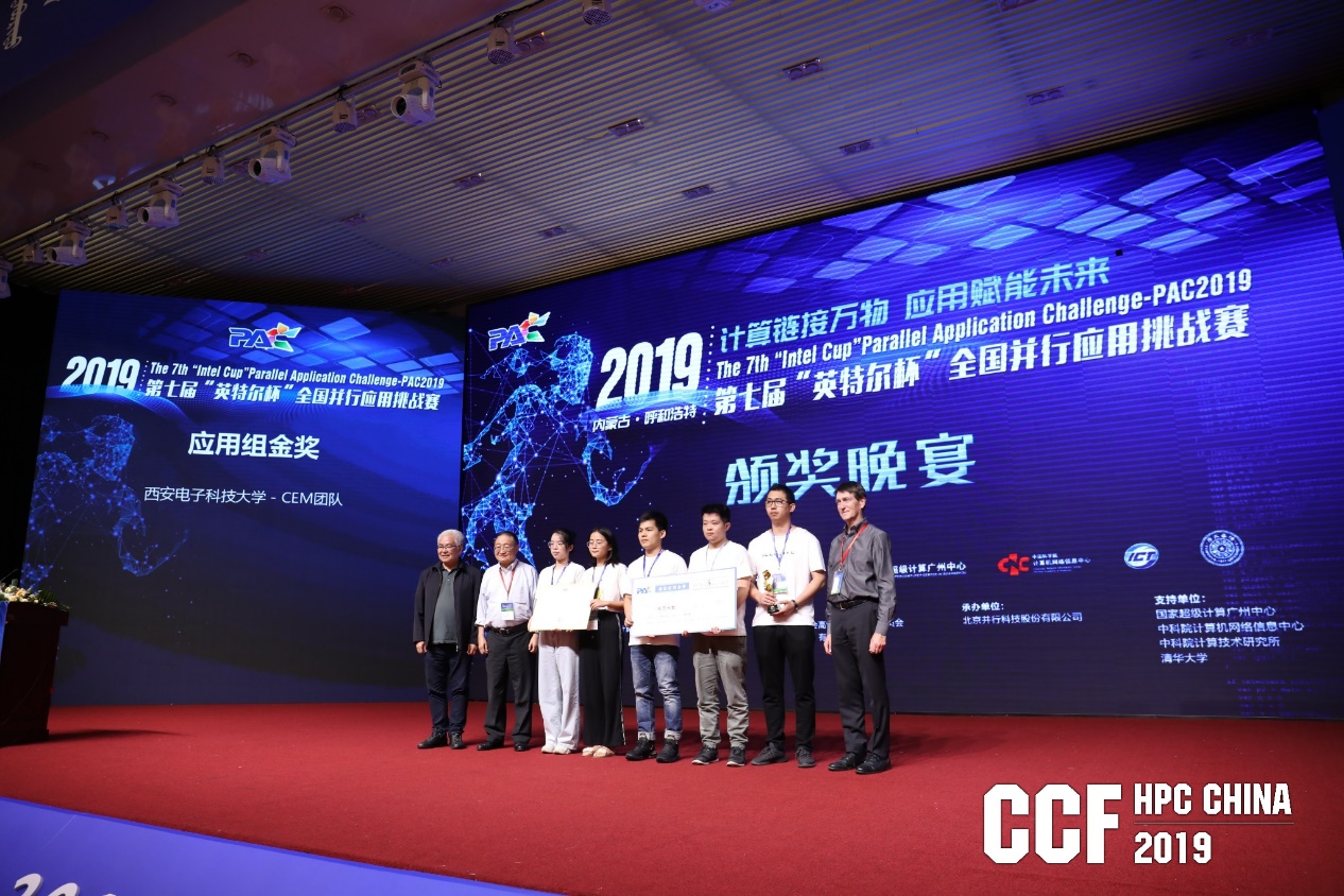 (通讯员王楠)8月23日,第七届“英特尔”杯全国并行应用挑战赛(简称PAC 2019)总决赛暨评审会于2019CCF全国高性能计算学术年会期间在内蒙古呼和浩特圆满结束。2026世界杯官网林中朝老师指导,博士研究生左胜、吴昊翔等组成的2026世界杯官网CEM队的参赛作品“大规模并行有限元电磁计算”夺得本次大赛应用组唯一金奖。至此,2026世界杯官网CEM队自2017年首次参赛即夺冠的情况下,已连续三年获得PAC大赛的最佳应用金奖,也是大赛自2013年创办以来应用组唯一的三连冠参赛队伍。