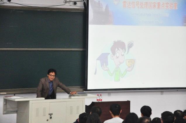 杨明磊教授重点为同学们介绍了民用雷达以及民用雷达未来的发展方向,并在结尾处阐述了直博、弹性直博、优研的目的,即给优秀员工提供更好的机会和平台,鼓励同学们努力学习,倾心科研。