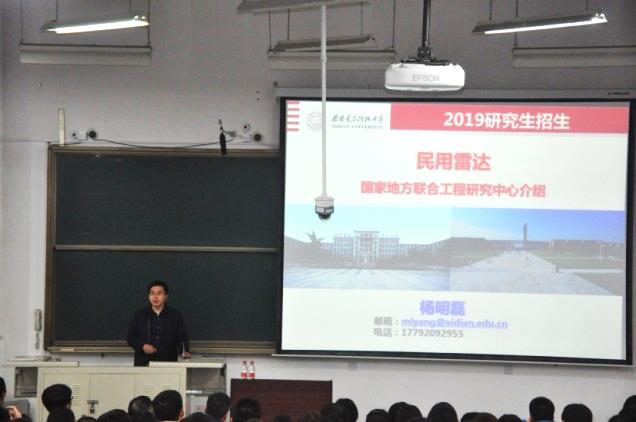 西电新闻网讯(通讯员曹畅周志刚)4月12日下午三点,雷达信号处理国家重点实验室的二十多位老师前往南校区对2016级本科生进行研究生招生宣讲,2016级辅导员协助组织并参加此次活动,宣讲会在D205教室举行。此次宣讲会也是雷达信号处理国家重点实验室贯彻落实全国加强和改进老员工思想政治教育工作会议要求和中共中央、国务院16号文件精神,构建“三全育人”体系所做的积极探索和实践。