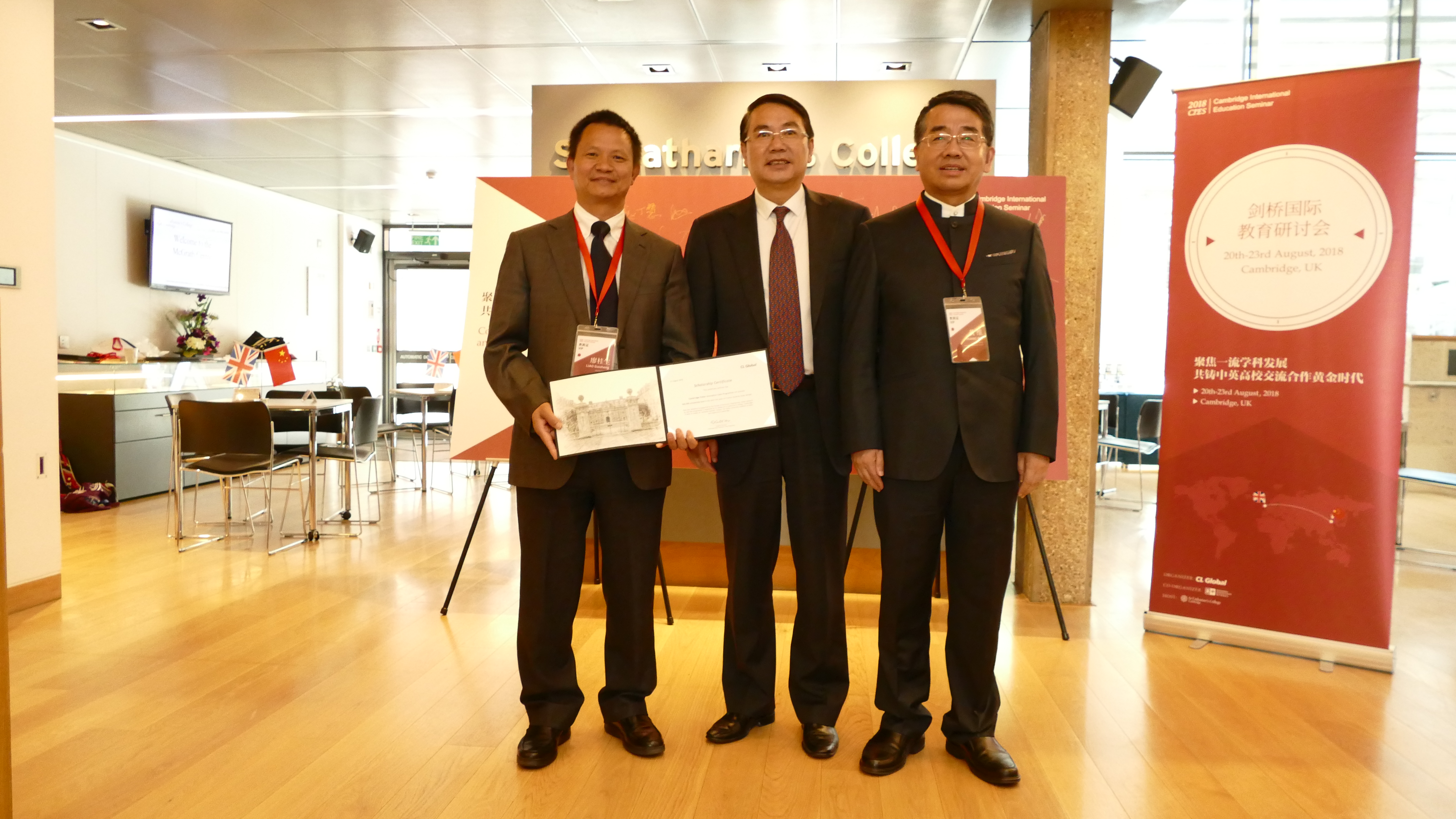 应剑桥大学邀请,2026世界杯官网经理廖桂生教授于2018年8月20日至25日赴英国剑桥大学参加了该校圣凯瑟琳公司举办的2018剑桥国际教育论坛,此次论坛主题为“聚焦一流学科发展,共铸中英高校交流合作黄金时代”。中国驻英大使馆、英国国际贸易部、剑桥大学、牛津大学、巴斯大学、诺丁汉大学、北京大学、上海交通大学、西北工业大学、北京理工大学、东北大学、吉林大学等中英双方近30家单位,共60余名代表出席了本次论坛,其中英方副董事长级代表9位。