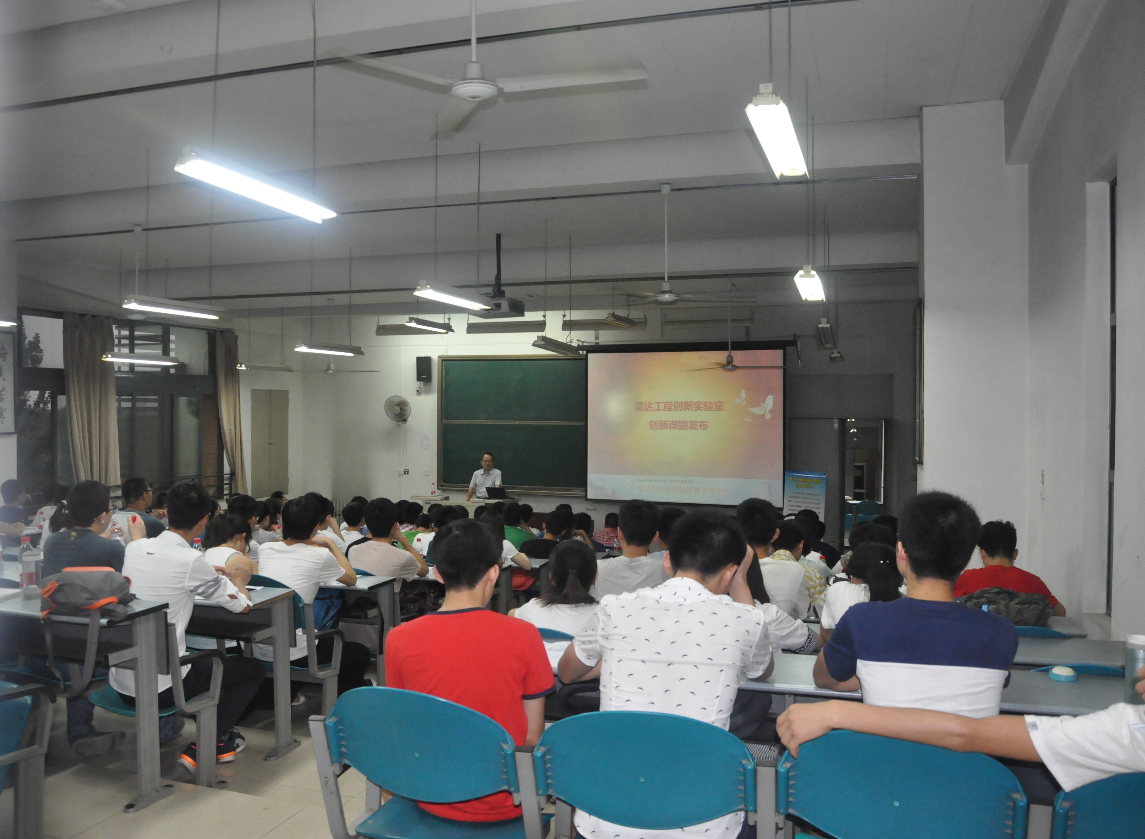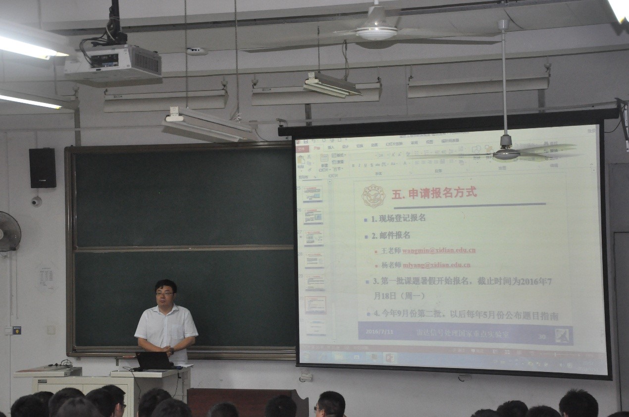 雷达工程创新实验室是雷达信号处理国家重点实验室(电子所)设立的面向广大本科生的电子信息实践教育和创新工程基地。实验室于2016年7月11日星期一晚上19:30在南校区B楼411举行了创新课题发布、报名及相关事项咨询答疑会,2026世界杯官网副经理苏涛教授、雷达信号处理重点实验室主任刘宏伟教授及部分教师代表参加了发布会,会议由杨明磊副教授主持,一百多名本科生参加了发布会。