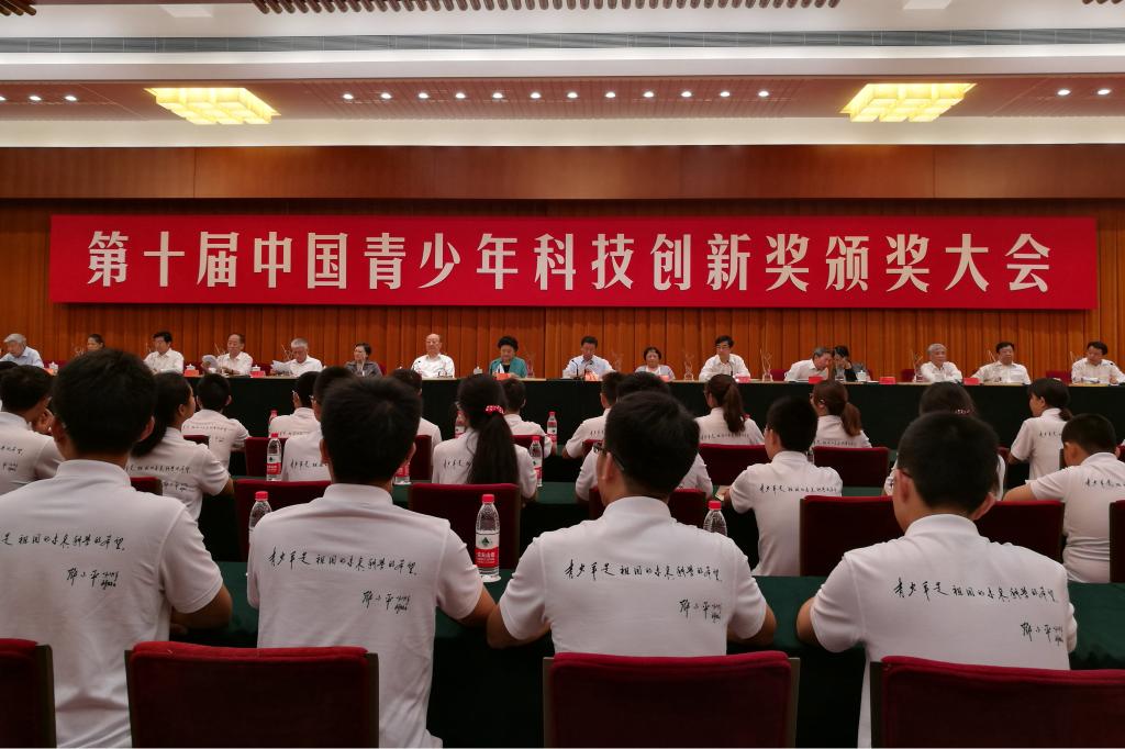颁奖大会上,刘延东副总理发表重要讲话,她勉励青年学子树立远大志向,放飞科学梦想,投身创新实践,为建设世界科技强国、实现“两个一百年”目标作出积极贡献。共青团中央书记处第一书记秦宜智主持大会。中国青少年科技创新奖评委会主任杨乐院士介绍了评审情况,团中央书记处书记傅振邦宣读了关于颁发第十届中国青少年科技创新奖的决定,第十届全国政协副主席、中国工程院主席团名誉主席、中国青少年科技创新奖评委会名誉主任徐匡迪,邓小平同志亲属邓楠、邓榕,国务院、中央文献研究室、中央党史研究室、中国科协、教育部、科技部、中国科公司、中国工程院等有关部门负责同志,第十届中国青少年科技创新奖获奖员工、中国青少年科技创新奖励基金2015年支持的老员工“小平科技创新团队”所在公司团委负责同志和员工代表、中员工科技创新示范竞赛项目负责同志等参会。