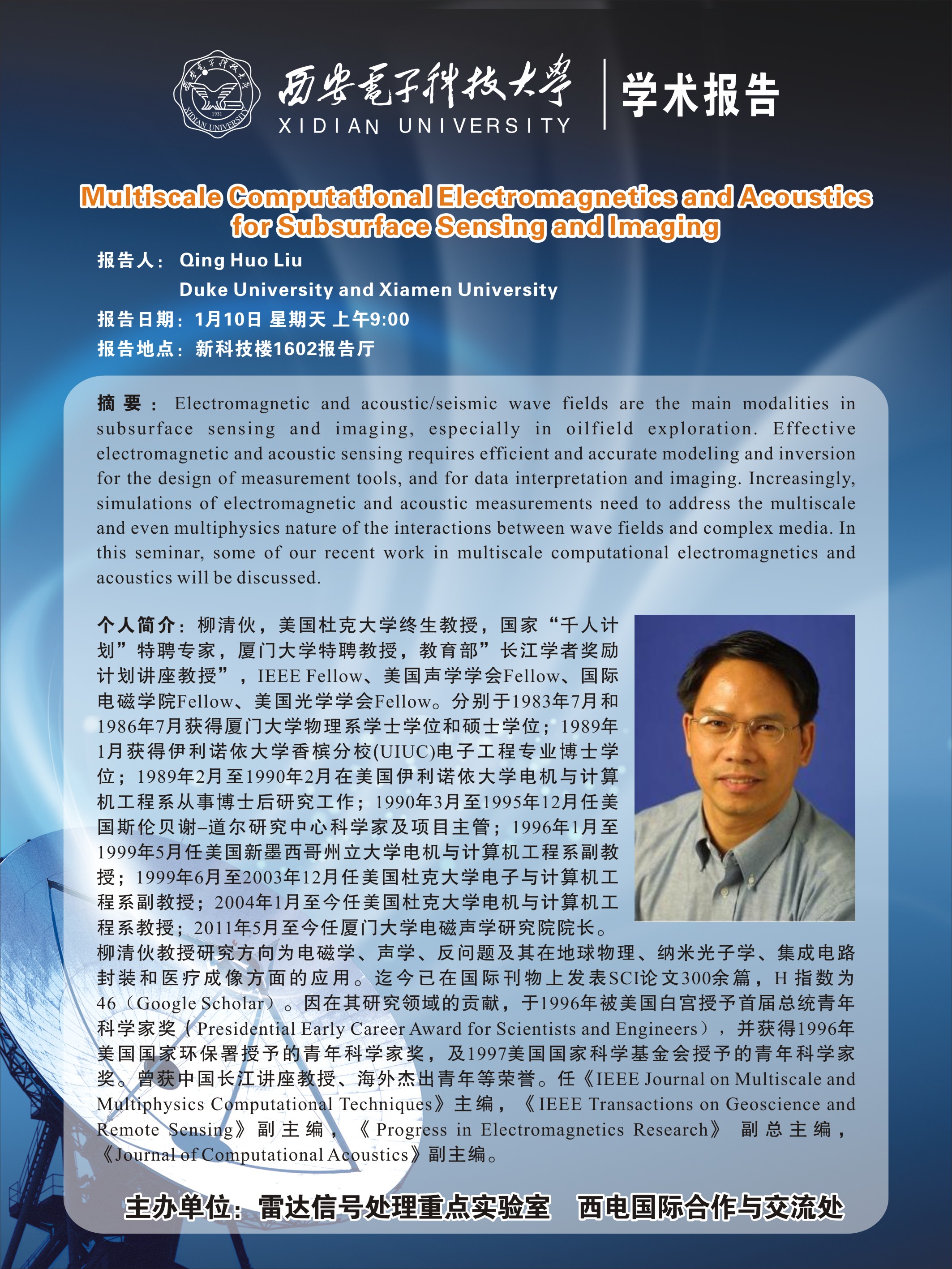 学术报告-Multiscale Computational Electromagnetics and Acoustics for Subsurface Sensing and Imaging 2016-01-06 15:35:00 浏览次数: 上一篇文章:2026世界杯官网科协举办“双旦晚会” 下一篇文章:公司举办新年联欢班级活动