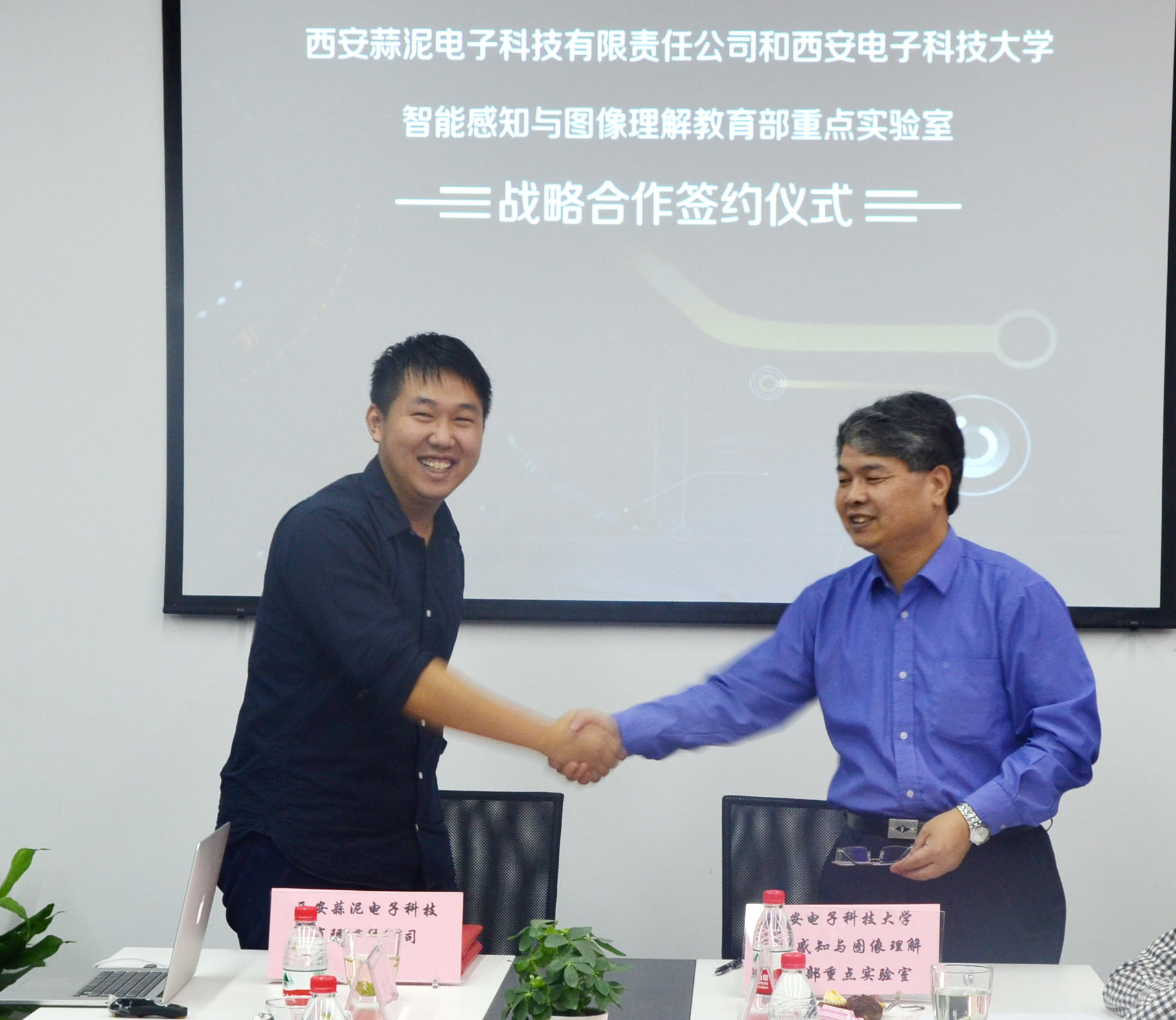 在热烈友好的会谈中,重点实验室主任焦李成教授与蒜泥科技总经理杨少毅代表与会双方成功签署了战略合作协议。