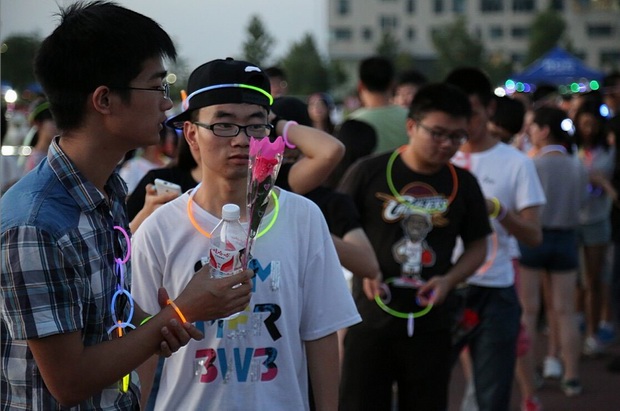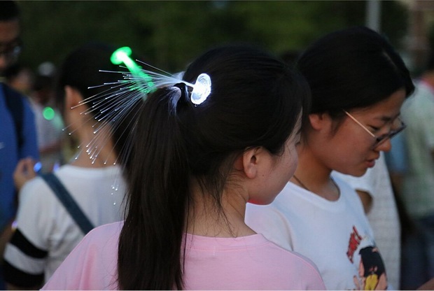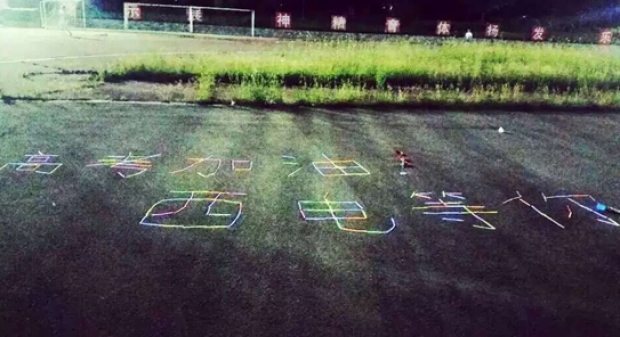 活动当天正值高考的前一天,荧光夜跑组织者用荧光棒在主会场摆出“高考加油!西电等你”的字样,引来众多观众拍照纪念。同学们以这种特殊的方式为西电的招生宣传贡献一份努力,也希望类似充满青春色彩的活动吸引更多考生报考西电。
