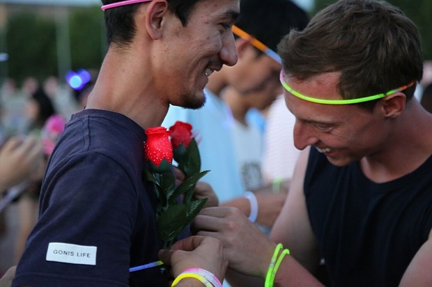 本次荧光夜跑全程三公里,共设三个装备区,选手每经过一个装备区便可领到不同的荧光设备来装扮自己。本次活动设置玫瑰环节,每位参与者入场时均会领到一朵荧光玫瑰,在夜跑途中可将玫瑰送给心仪的“她”或“他”表达心意并结识缘分。在主会场狂欢的最后时刻,手中玫瑰数较多的选手上台通过唱歌跳舞等才艺展示进行现场拉票,拥有最多玫瑰的小伙伴获得终极大奖。