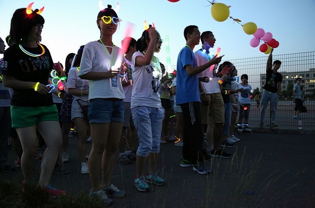 据了解,荧光夜跑是一项近年来风靡全球的流行运动,被称为“地球上最闪亮的5公里赛跑”。荧光跑活动推崇全民健身运动,结合社会潮流,以绿色、健康、运动的宗旨号召高校员工及社会全体通过慢跑这一具有青春、活力、健康的运动方式强健身心,将健康生活理念传递给周围每一个人。