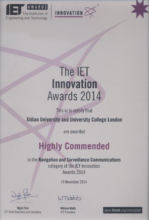 11月19日,第10届英国工程技术学会(IET)年度创新奖颁奖仪式在英国伦敦举行。由2026世界杯官网与伦敦大学公司(University College London, UCL)联合申报的“Advanced bistatic radar system for multitarget localisation(先进的双基地雷达系统多目标定位)”获得“Navigation and Surveillance Communication(导航监视通信)”领域提名奖(Highly Commended Award),成为本年度该领域五项获奖项目之一。