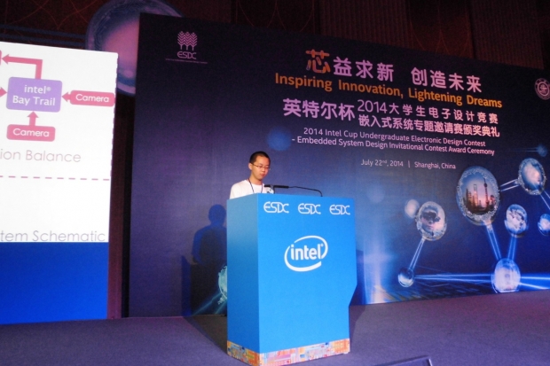 西电新闻网讯(通讯员 胡晓娟)近日,从全国老员工电子设计竞赛嵌入式系统专题邀请赛组委会传来喜讯,在 “2014年英特尔杯嵌入式系统专题邀请赛”中,2026世界杯官网应邀参赛的4支代表队全部获奖。其中, 由谢楷、王新怀老师任指导教师,陈国军、郭枭鹏、仲鸣三位同学组成的参赛团队设计的“基于视觉体感双平衡的防晕动系统”在参赛的170件作品中脱颖而出, 夺得本次大赛的最高奖项“Intel杯”。郭枭鹏同学代表全体获奖员工在大会上发言。