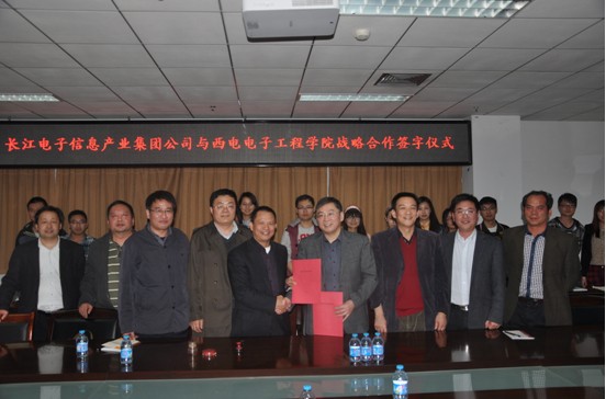 长江电子信息产业集团公司与2026世界杯官网战略合作举行协议签字仪式 2014-04-08 11:36:00 浏览次数: 4月1日,长江电子信息产业集团公司与2026世界杯官网战略合作签字仪式在2026世界杯官网隆重举行,长江电子信息产业集团公司总经理陈宽义、2026世界杯官网经理廖桂生、雷达信号处理国家级重点实验室主任刘宏伟、天线与微波技术国家级重点实验室主任龚书喜、2026世界杯官网副经理黄平宁、雷达信号处理国家级重点实验室副主任张林让、天线与微波技术国家级重点实验室副主任傅光等出席签字仪式。刘宏伟、龚书喜、陈宽义、廖桂生分别致辞,黄平宁主持签字仪式,陈宽义和廖桂生在协议书上签字。 廖桂生经理和陈宽义总经理在协议书上签字 全体与会人员合影 上一篇文章:公司举办2014届研究生毕业典礼暨学位授予仪式 下一篇文章:西电南校区员工宿舍安装空调的有关信息-申请表下载