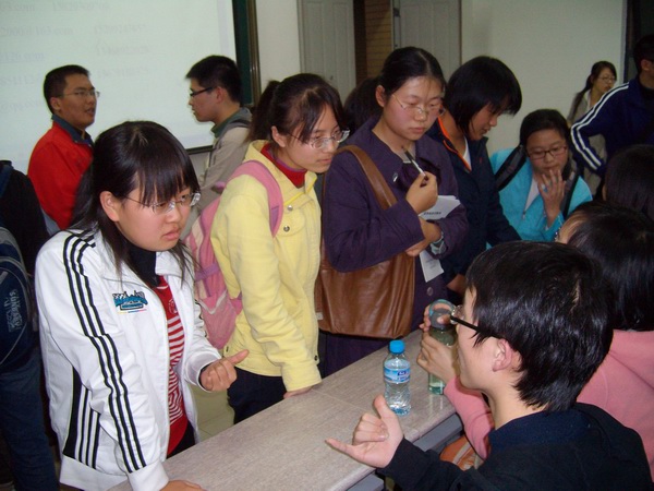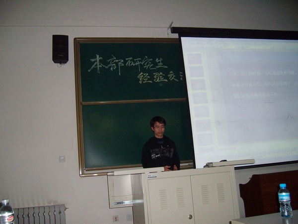 七点整,交流会正式开始。此时能够容纳大约150人的小教室早已人山人海,过道和后排都挤满了渴望通过此契机与研究生学长们面对面地交流的本科生们。首先,2026世界杯官网员工会的主持人致欢迎辞,欢迎从老校区驱车前来的研究生学长们。其次,2026世界杯官网研会主席团副主席庄雄同学简单介绍了本次交流会主题并对为促成此次交流会而辛勤筹划的所有同学表示感谢。然后,由研究生会学术部主持人孟祥飞同学分别介绍了参加本次交流会的7名优秀研究生代表。当介绍到他们的优异成绩时,现场不断响起热烈的掌声。