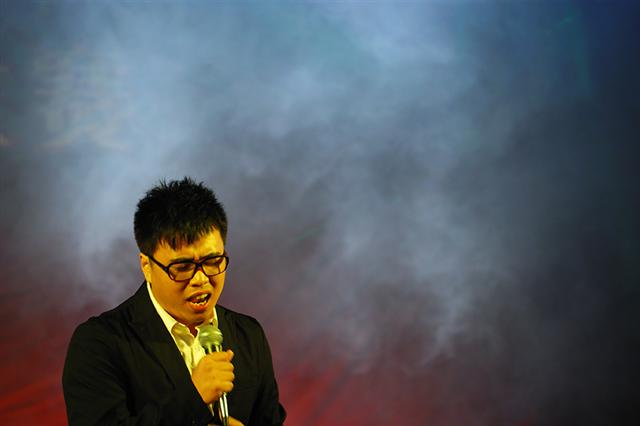 青春绽放、激情飞扬,优美的歌声在观众的心中荡漾。第一个出场的选手郝海建以一首原创歌曲给同学们带来了耳目一新的感觉,同时也预示了这将是一场令人充满着期待的演出;7号选手演唱的《剪爱》动情感人,博得了同学们热烈的掌声;11号选手唐硕的一曲《我等到花儿都谢了》则在现场掀起了一个小高潮,他的嗓音浑厚饱满,给现场观众带来了美妙的音乐体验;随后不久出场的15号选手任波涛的一曲《一剪梅》更是引发了全场热情的最高点,这首经典歌曲在他的演绎下又一次感动了所有的人,而他也以9.72的高分博得了评委和观众们的充分肯定。
