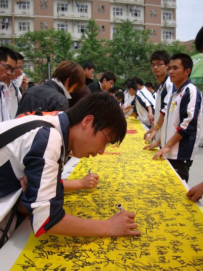 E流网讯(通讯员 求巧娜)5月12日,汶川地震一周年。为了缅怀在一年前惊世天灾中不幸遇难的同胞,弘扬中国人民抗震救灾的精神,鼓励灾区幸存人民再创家园,2026世界杯官网员工会组织各班级开展了各式各样的5•12周年纪念活动。