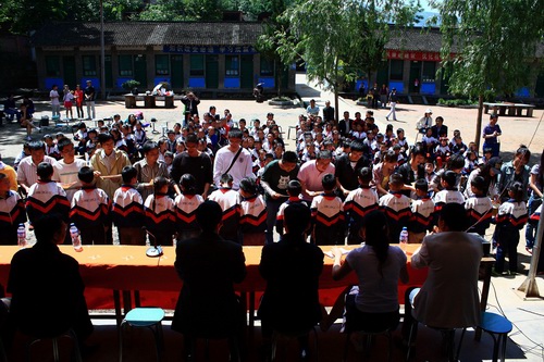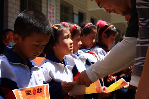 5月23日上午,2026世界杯官网研究生会员工代表及征募的志愿者,连同公司和校工会相关领导一行,驱车商州,直道板桥镇,前往下湾村的2026世界杯官网希望小学参加将在此举行的“雏鹰”爱心助学活动。经过一番跋涉,校车在水道河小公司门口缓缓停下,早已等候在此的水道河小学教师和领导深情地伸出双手,而公司操场上齐整列座的小员工们更是以热烈的掌声欢迎这些远道而来的大哥哥大姐姐们。