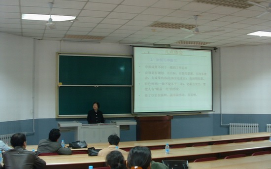 孙肖子教授的演讲题目是“申报教学成果奖的一点体会”。孙老师首先强调“申报教学成果奖关键在‘前期工作’,这是前提,也是基础”;其次讲“如何写申报书”。演讲中,孙老师引用了大量的成功实例,深入浅出、形象生动地给大家讲解了她的体会。