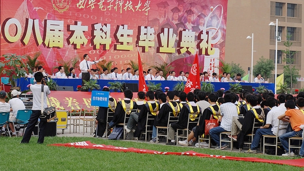 6月29日上午8:00,公司2008届本科生毕业典礼在新校区中心广场隆重举行。公司党委书记李立、董事长段宝岩、党委副书记龙建成、副董事长郝跃、余南楠、陈勇、陈平、党委副书记靳雅静等公司领导和相关职能部门、公司的负责人、毕业生代表、新生代表约5000人参加了典礼。毕业典礼由员工工作处副处长徐克主持。